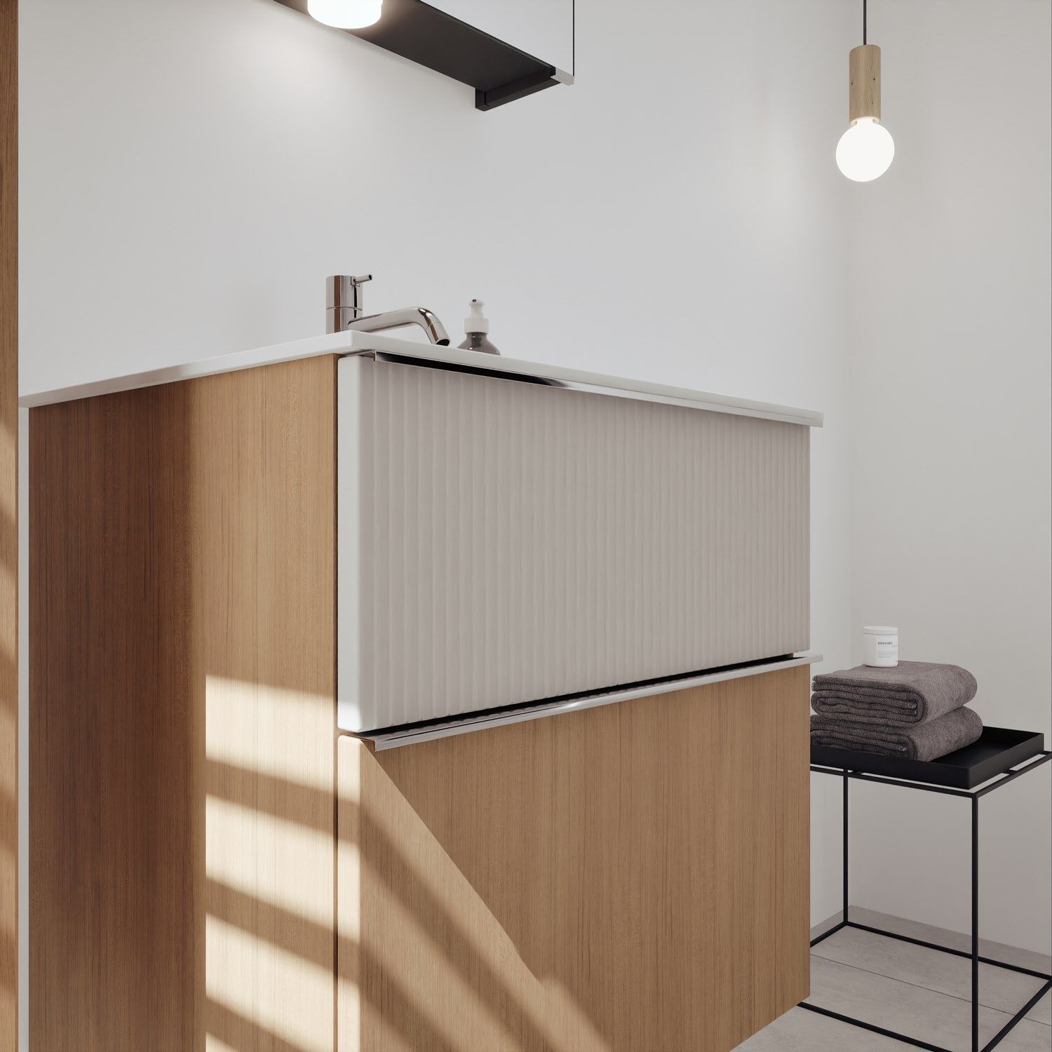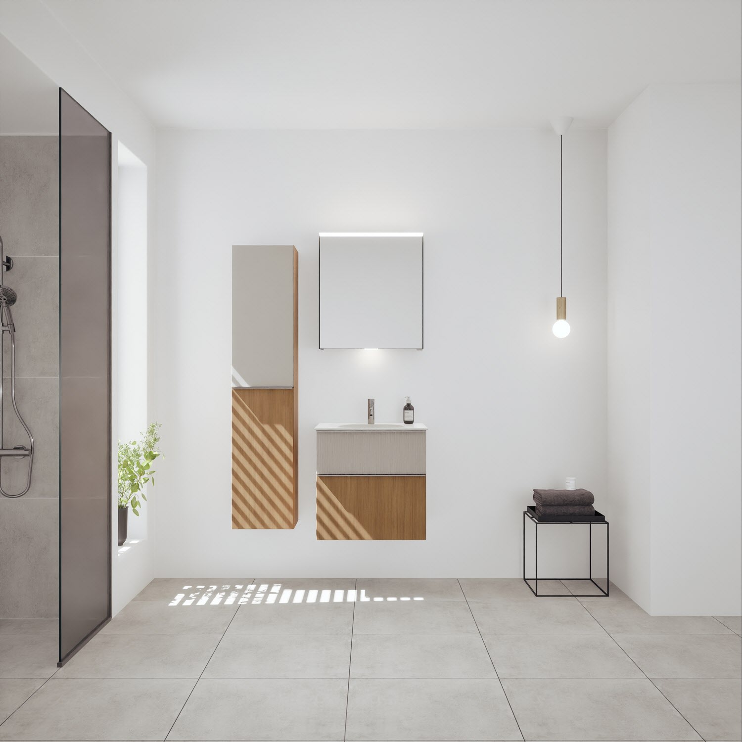 burgbad Fiumo 2.0 Mineralguss-Waschtisch mit Waschtischunterschrank 62 cm, mit Griff G0146