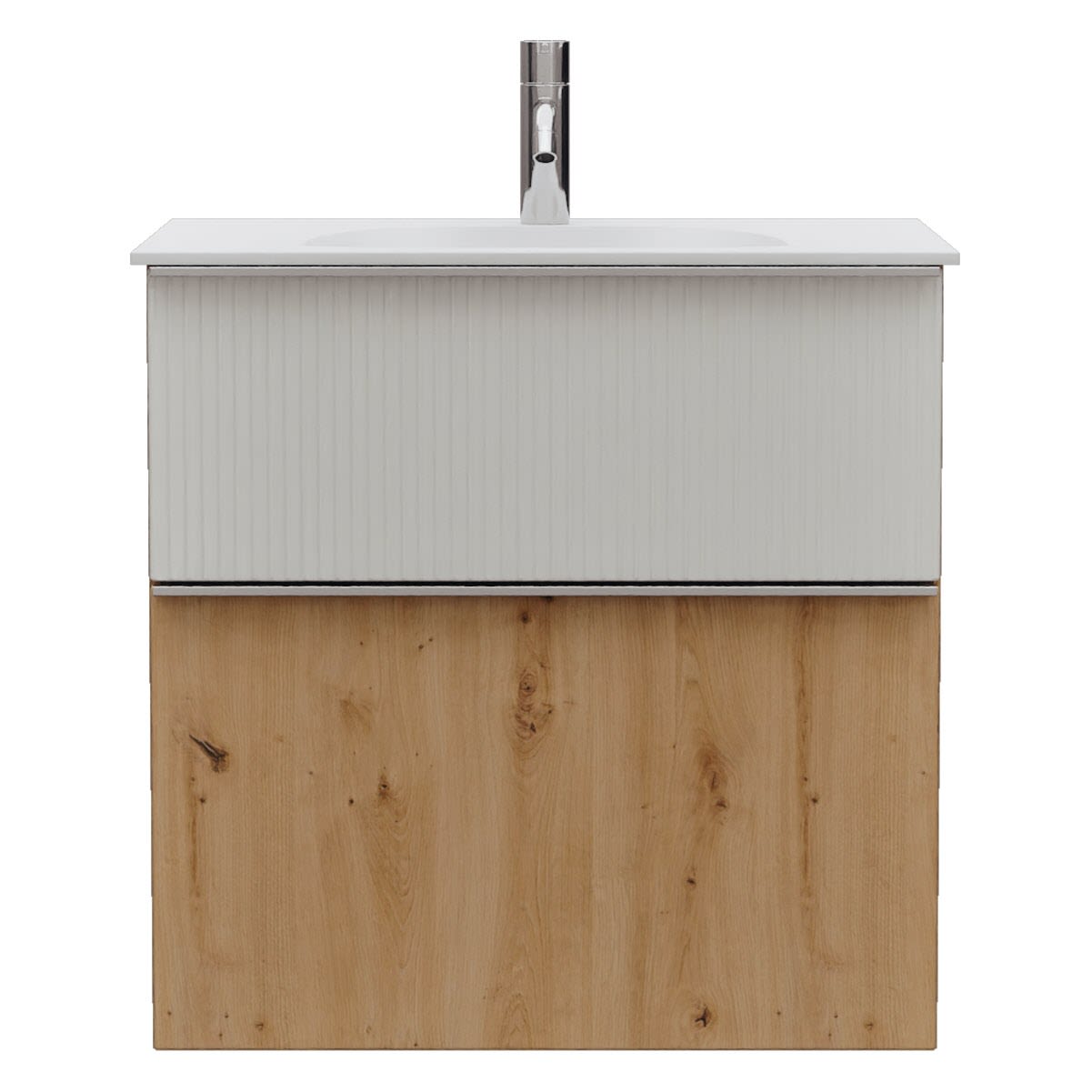 burgbad Fiumo 2.0 Mineralguss-Waschtisch mit Waschtischunterschrank 62 cm, mit Griff G0146