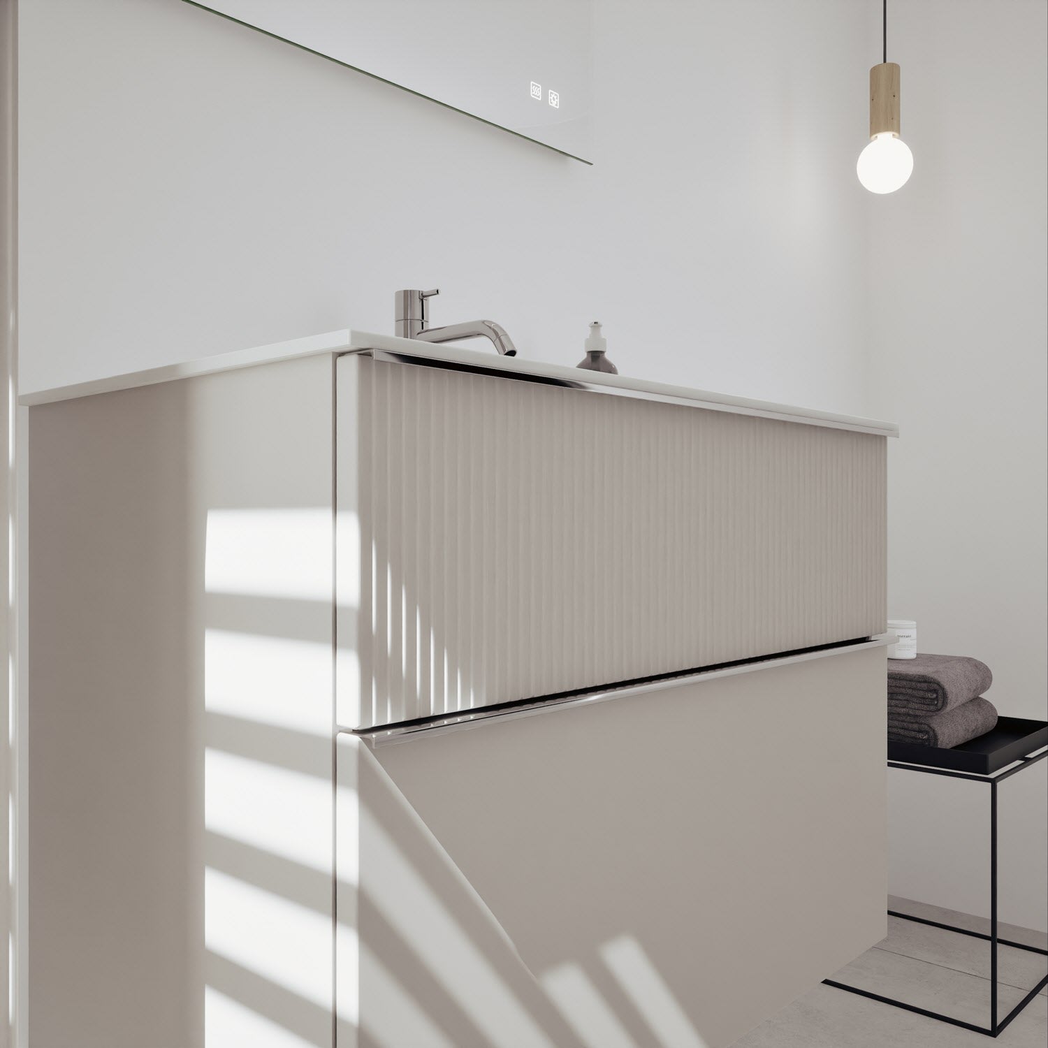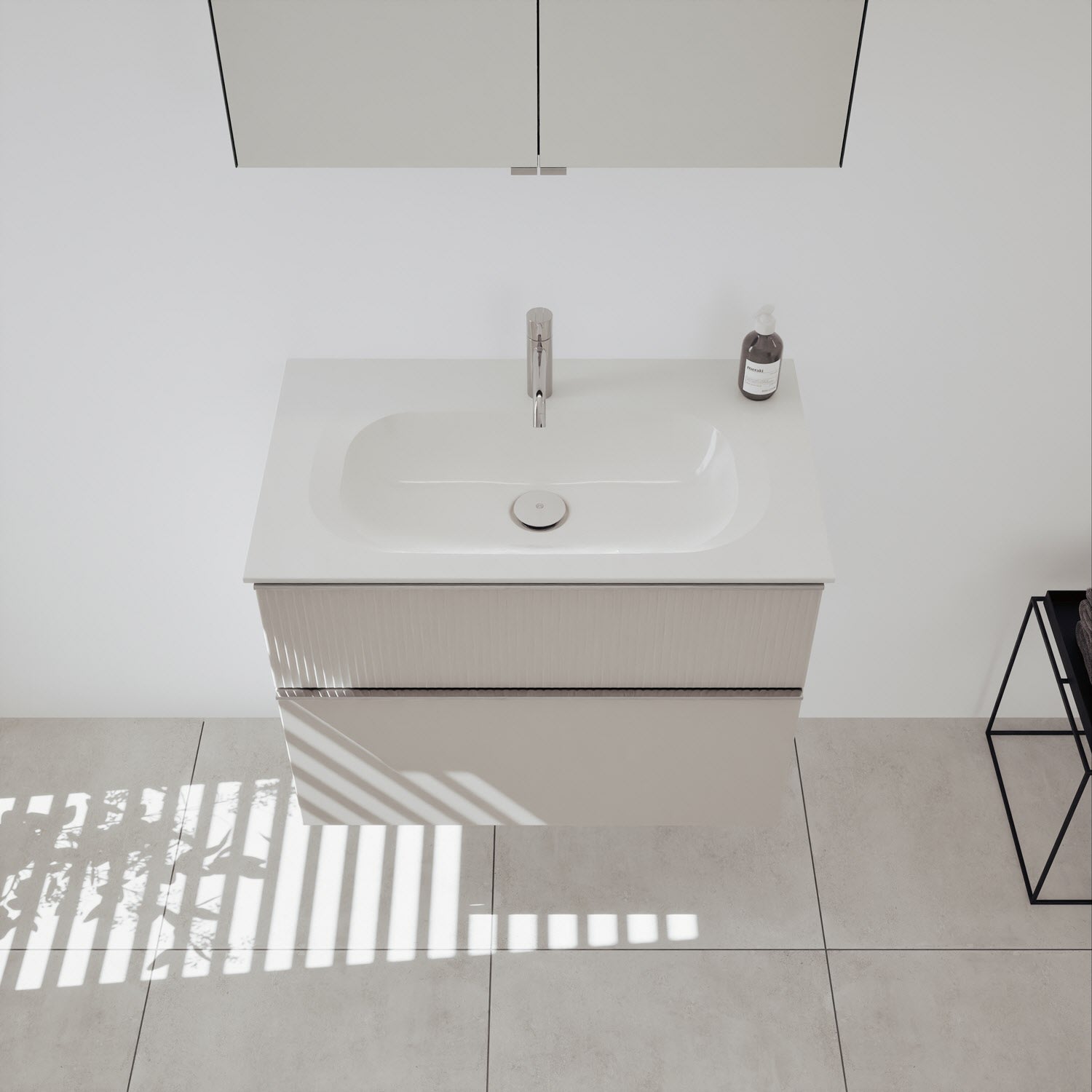 burgbad Fiumo 2.0 Mineralguss-Waschtisch mit Waschtischunterschrank 82 cm, mit Griff G0146