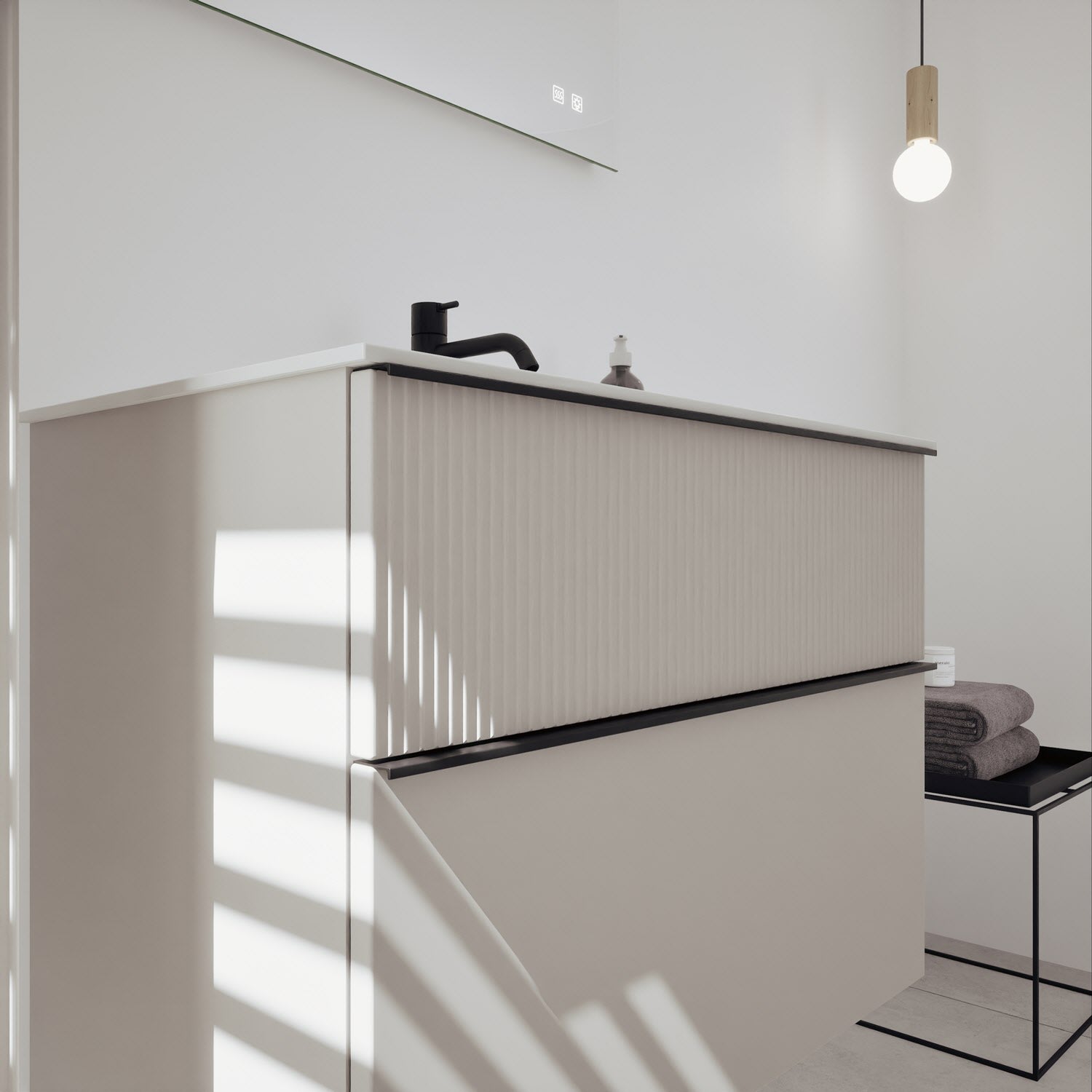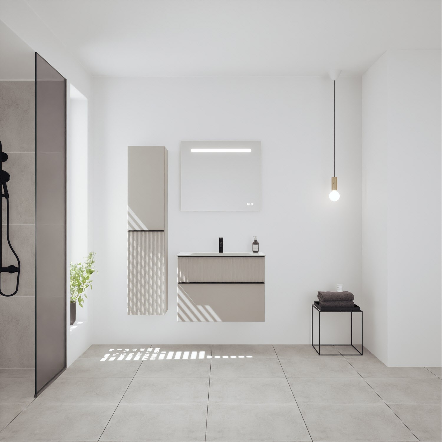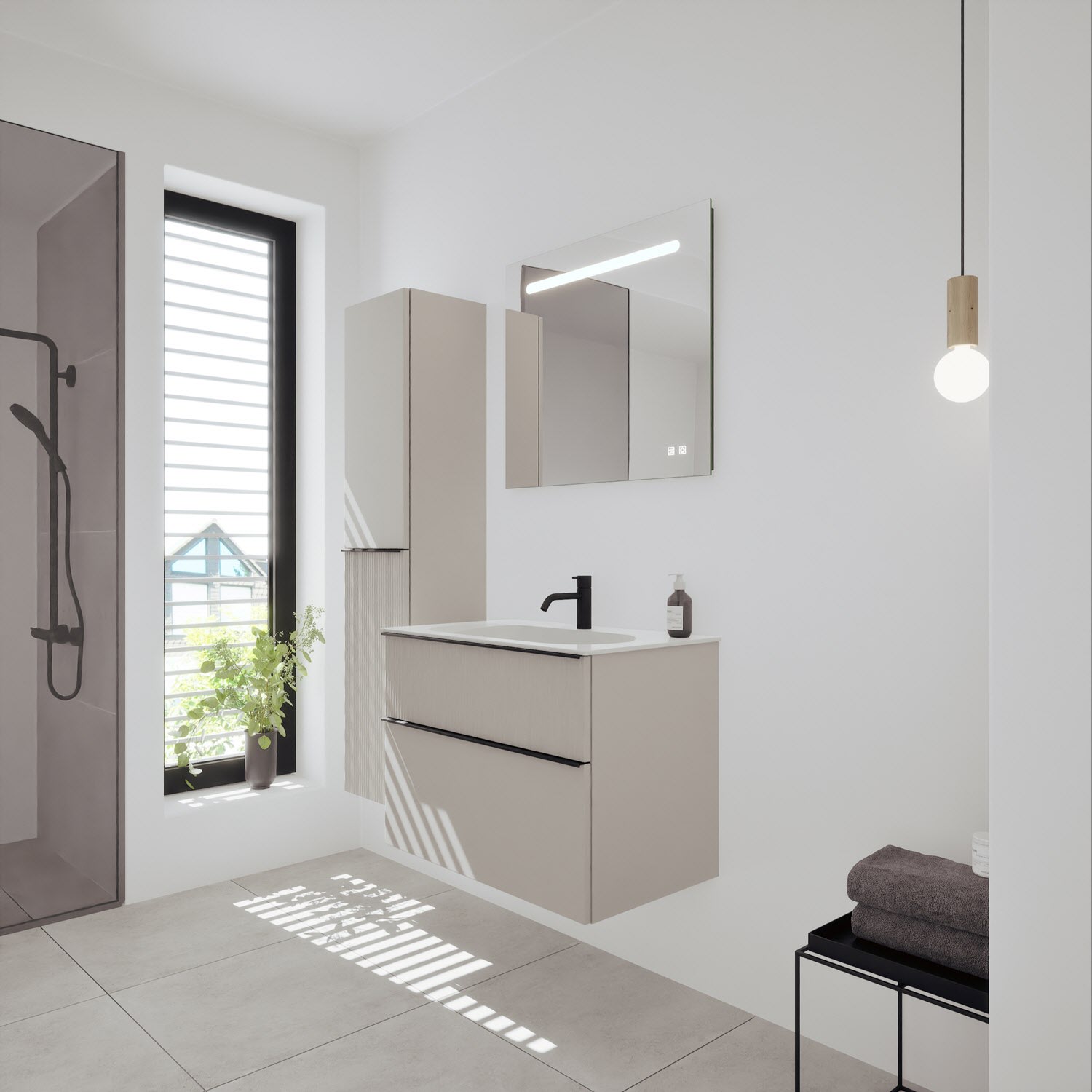 burgbad Fiumo 2.0 Mineralguss-Waschtisch mit Waschtischunterschrank 82 cm, mit Griff G0200