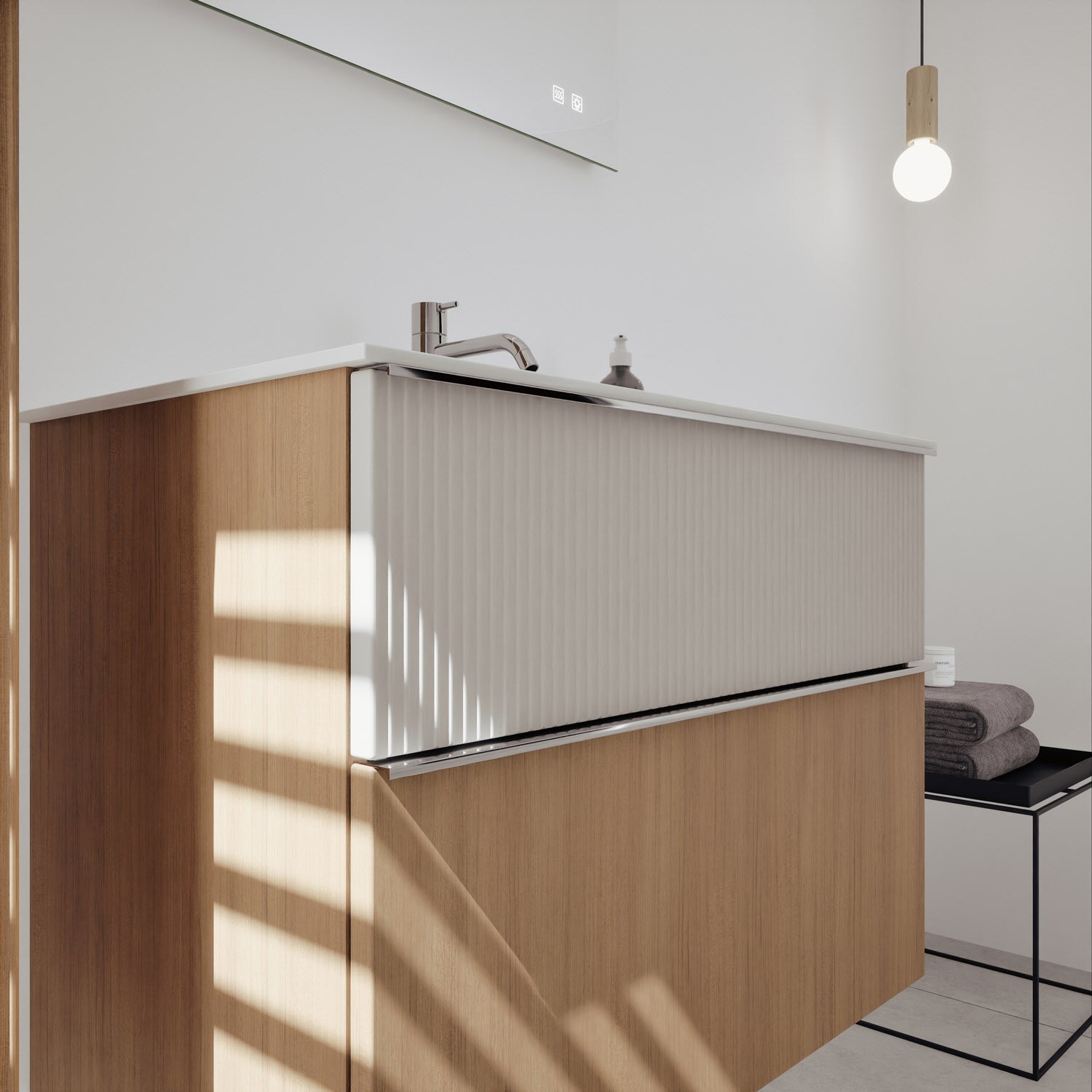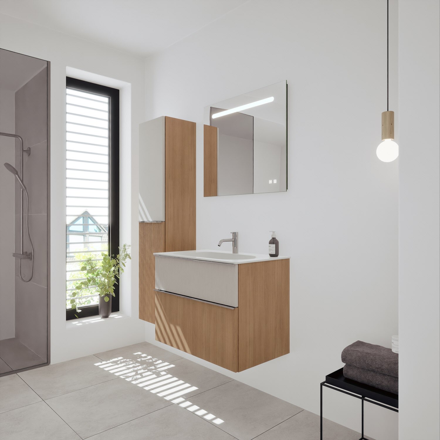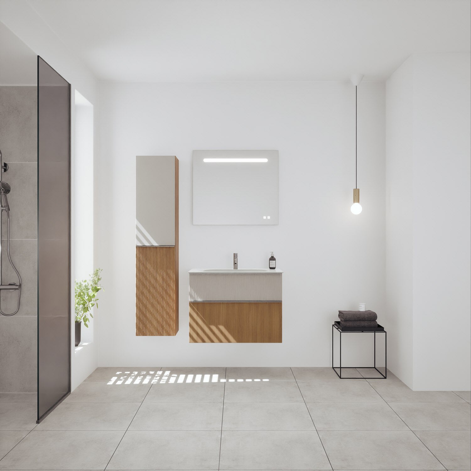 burgbad Fiumo 2.0 Mineralguss-Waschtisch mit Waschtischunterschrank 82 cm, mit Griff G0146