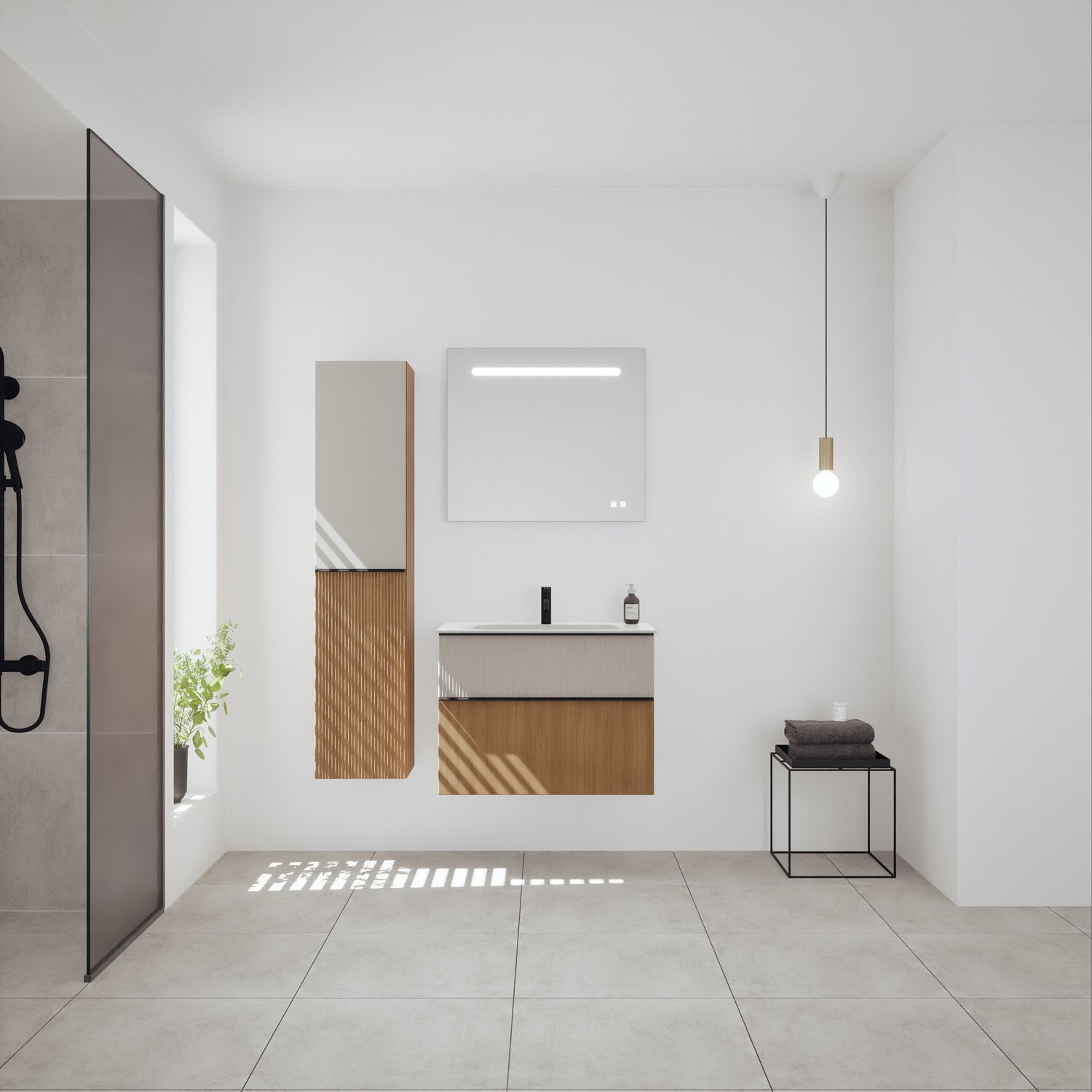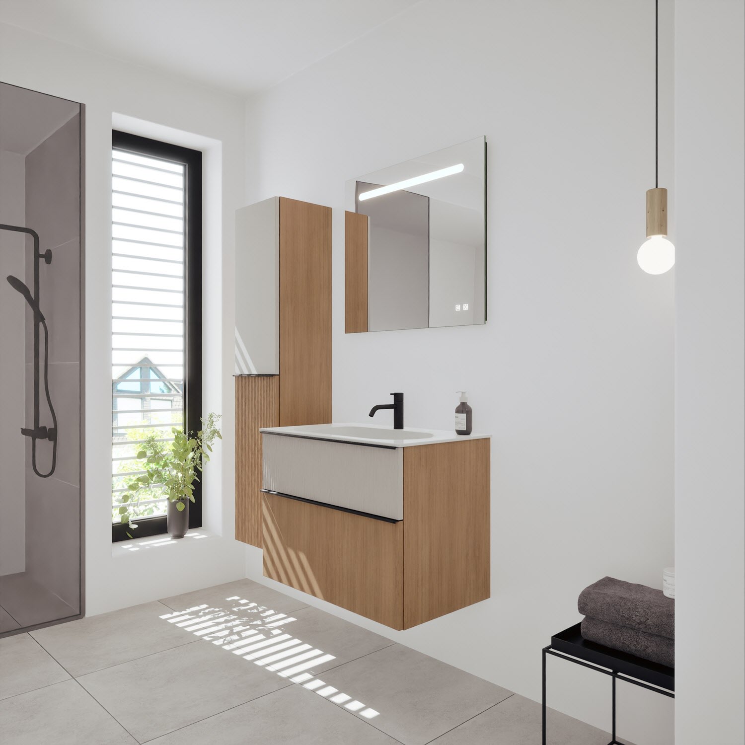 burgbad Fiumo 2.0 Mineralguss-Waschtisch mit Waschtischunterschrank 82 cm, mit Griff G0200