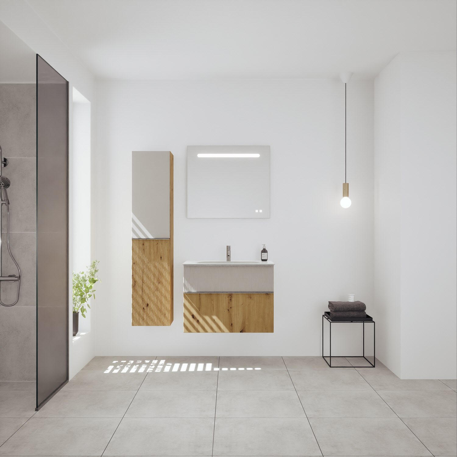 burgbad Fiumo 2.0 Mineralguss-Waschtisch mit Waschtischunterschrank 82 cm, mit Griff G0146