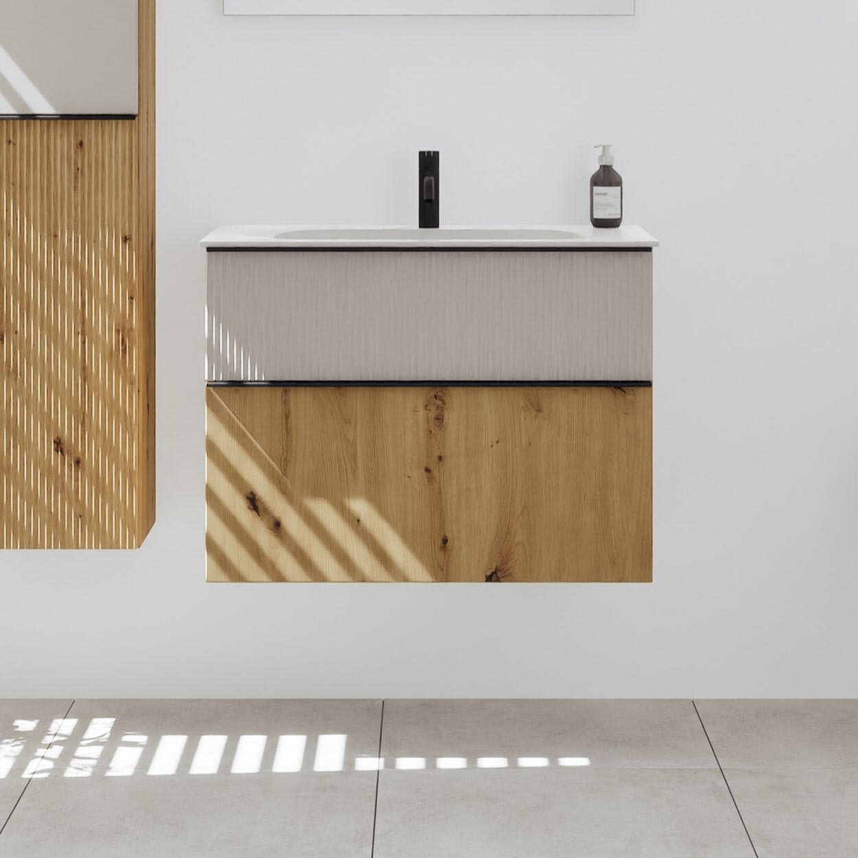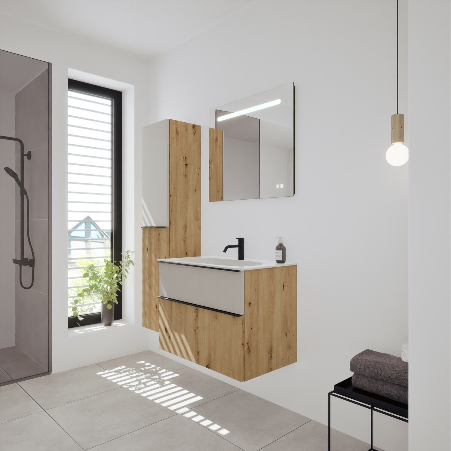 burgbad Fiumo 2.0 Mineralguss-Waschtisch mit Waschtischunterschrank 82 cm, mit Griff G0200