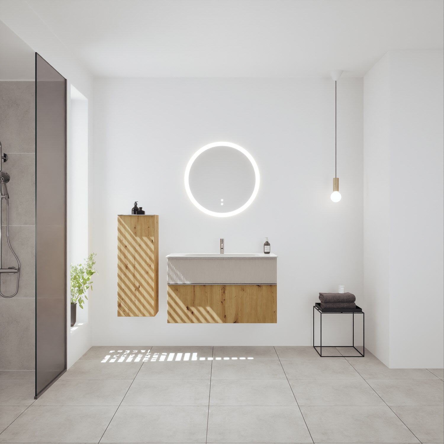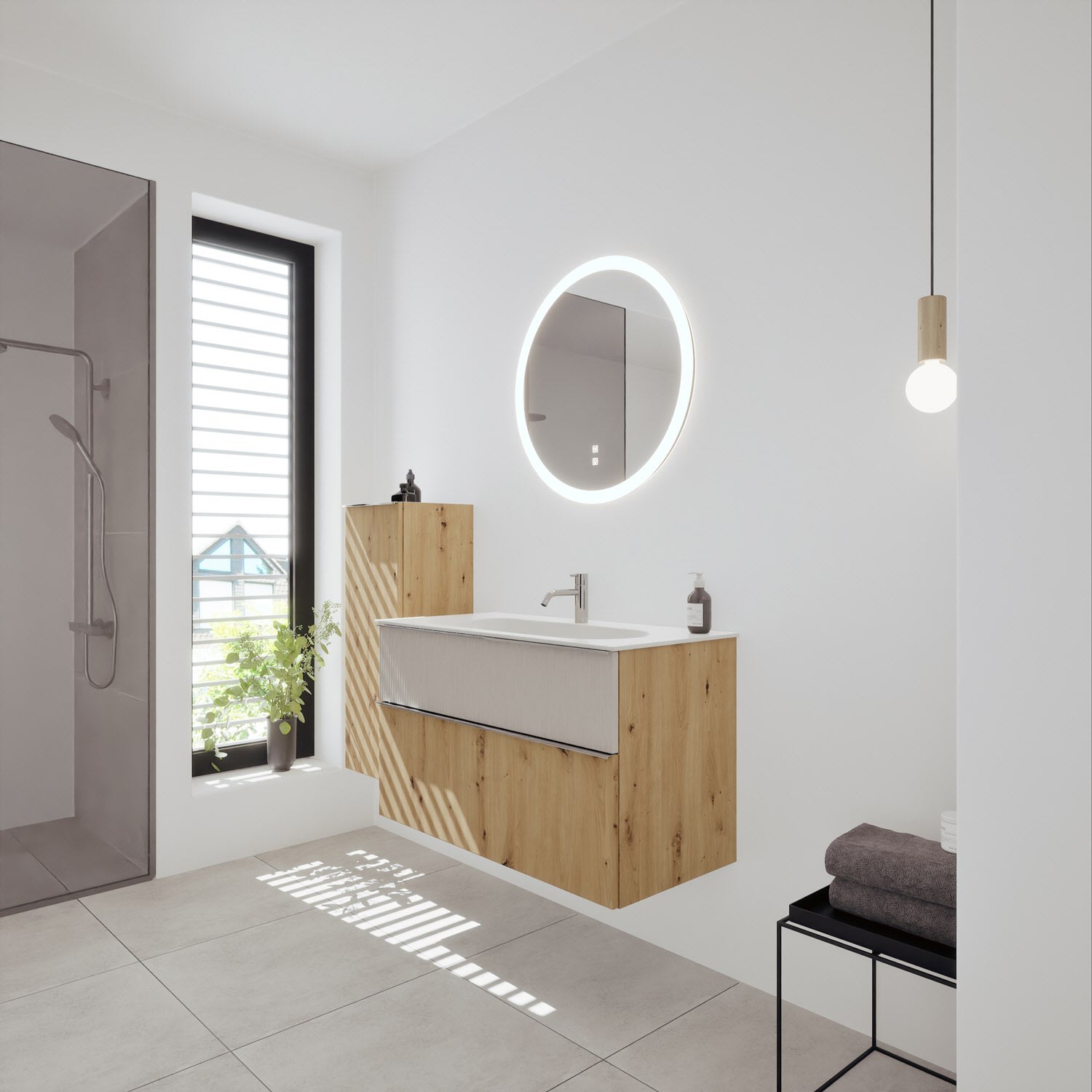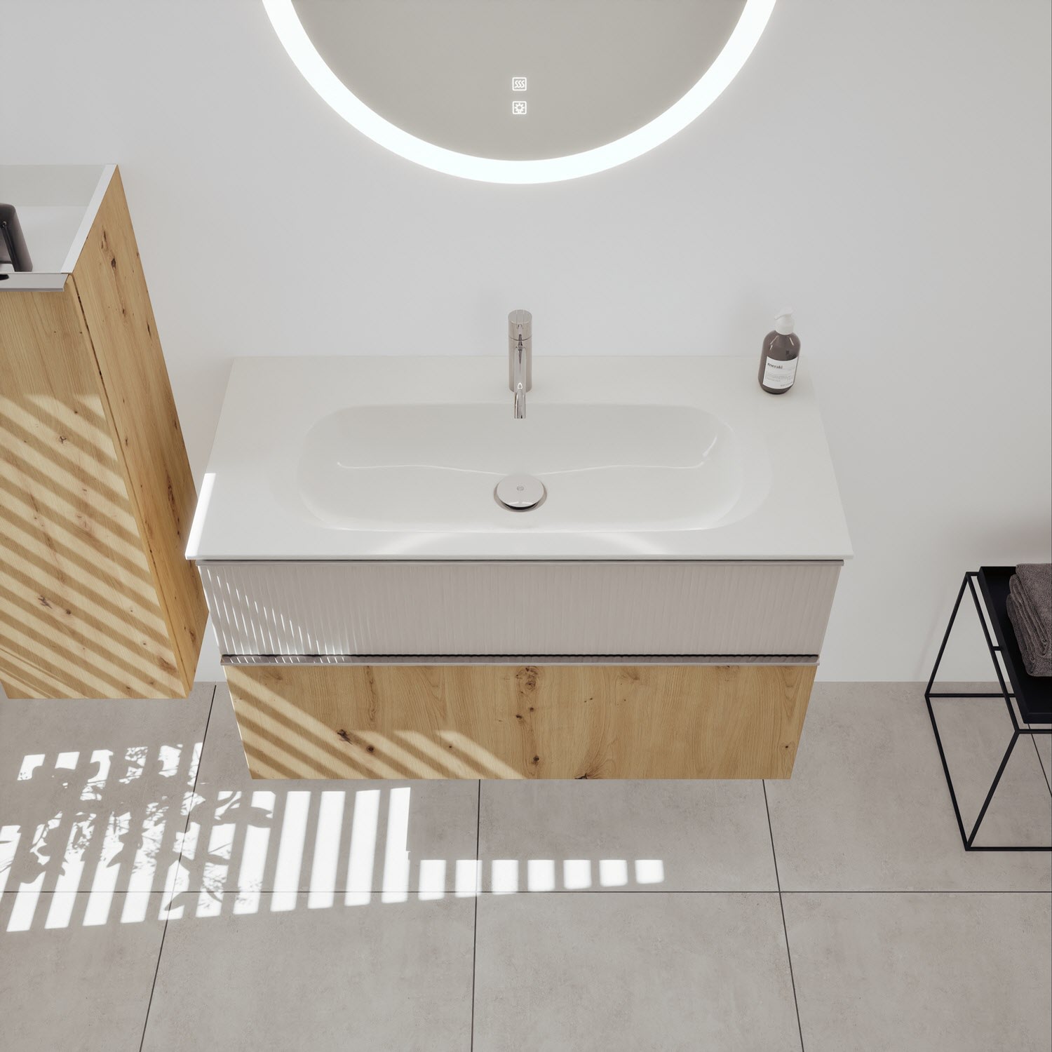 burgbad Fiumo 2.0 Mineralguss-Waschtisch mit Waschtischunterschrank 102 cm, mit Griff G0146