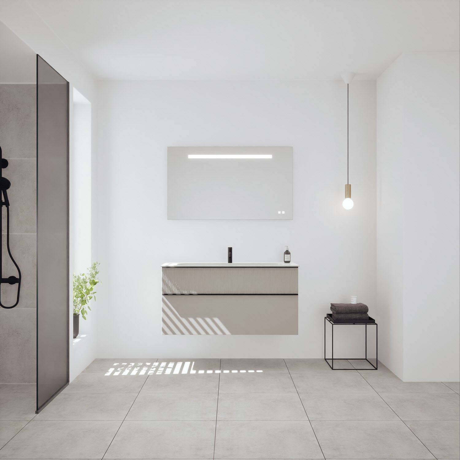 burgbad Fiumo 2.0 Badmöbelset 142 cm mit Waschtisch mit Unterschrank mit Griff G0200 und Spiegelschrank