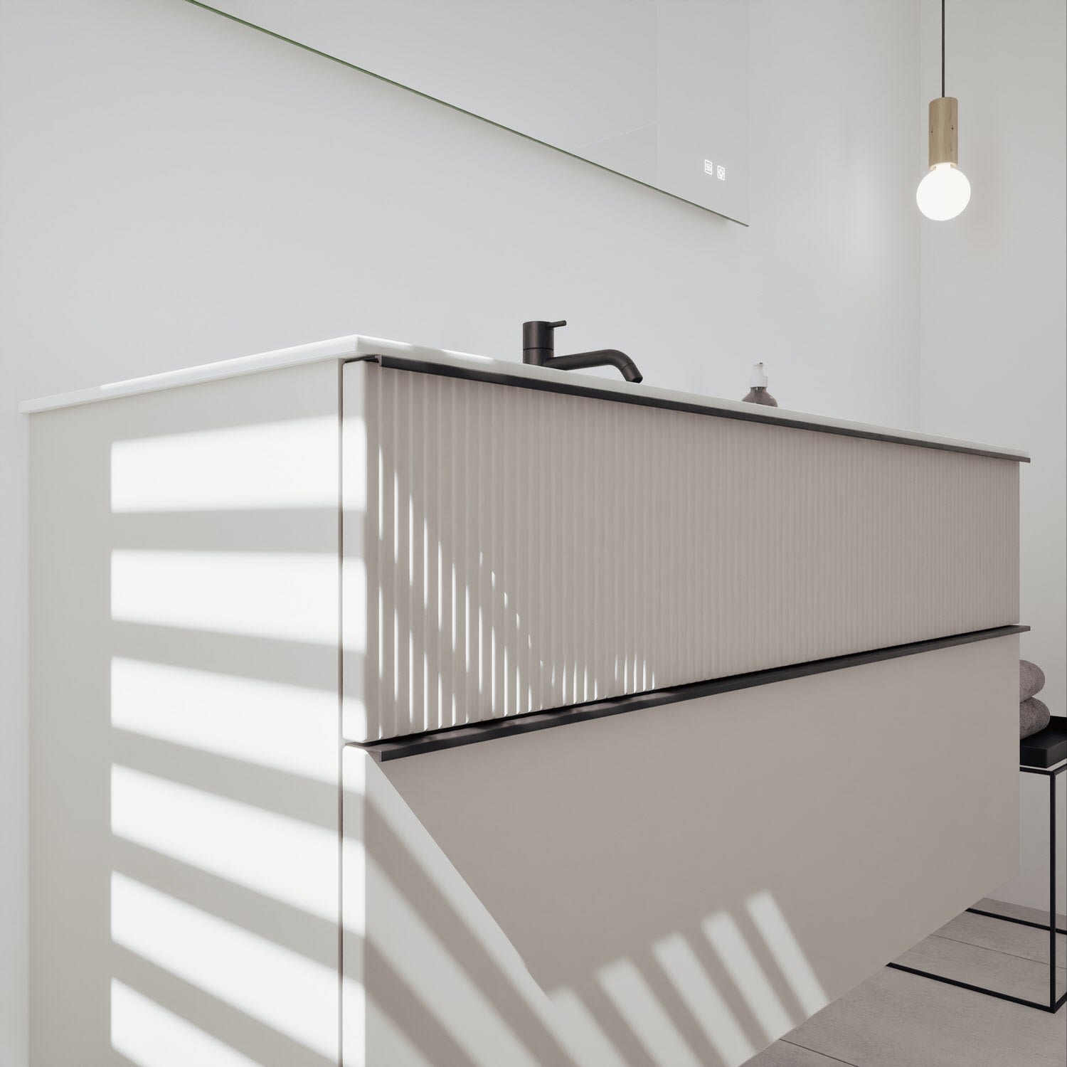 burgbad Fiumo 2.0 Mineralguss-Waschtisch mit Waschtischunterschrank 122 cm, mit Griff G0200