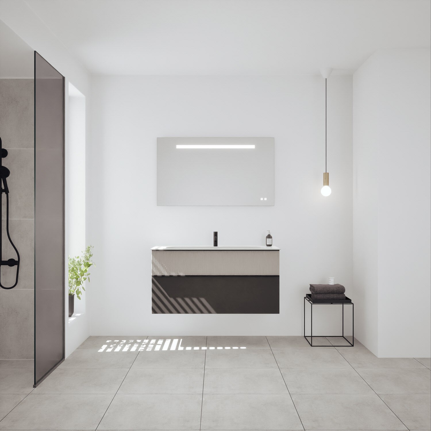 burgbad Fiumo 2.0 Badmöbelset 142 cm mit Waschtisch mit Unterschrank mit Griff G0200 und Spiegelschrank