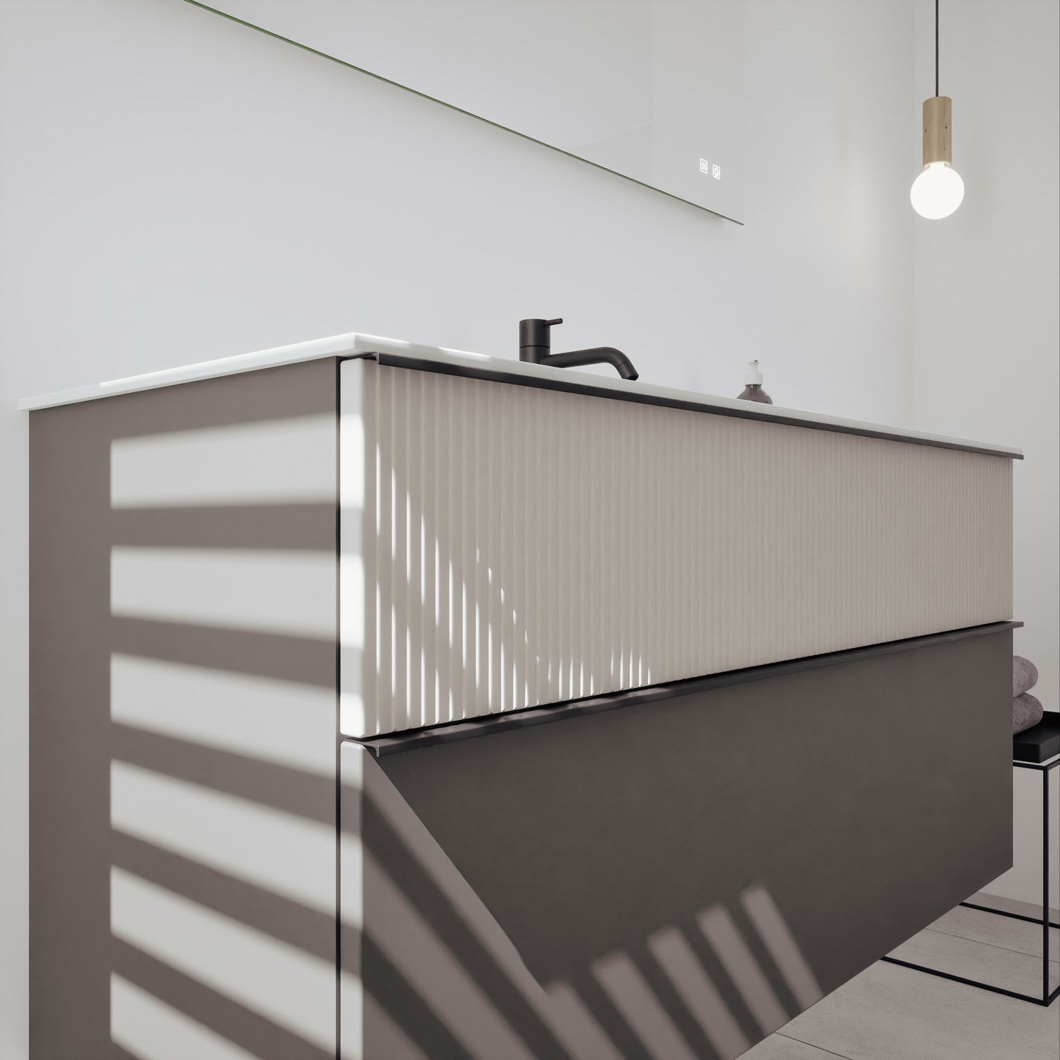 burgbad Fiumo 2.0 Mineralguss-Waschtisch mit Waschtischunterschrank 122 cm, mit Griff G0200
