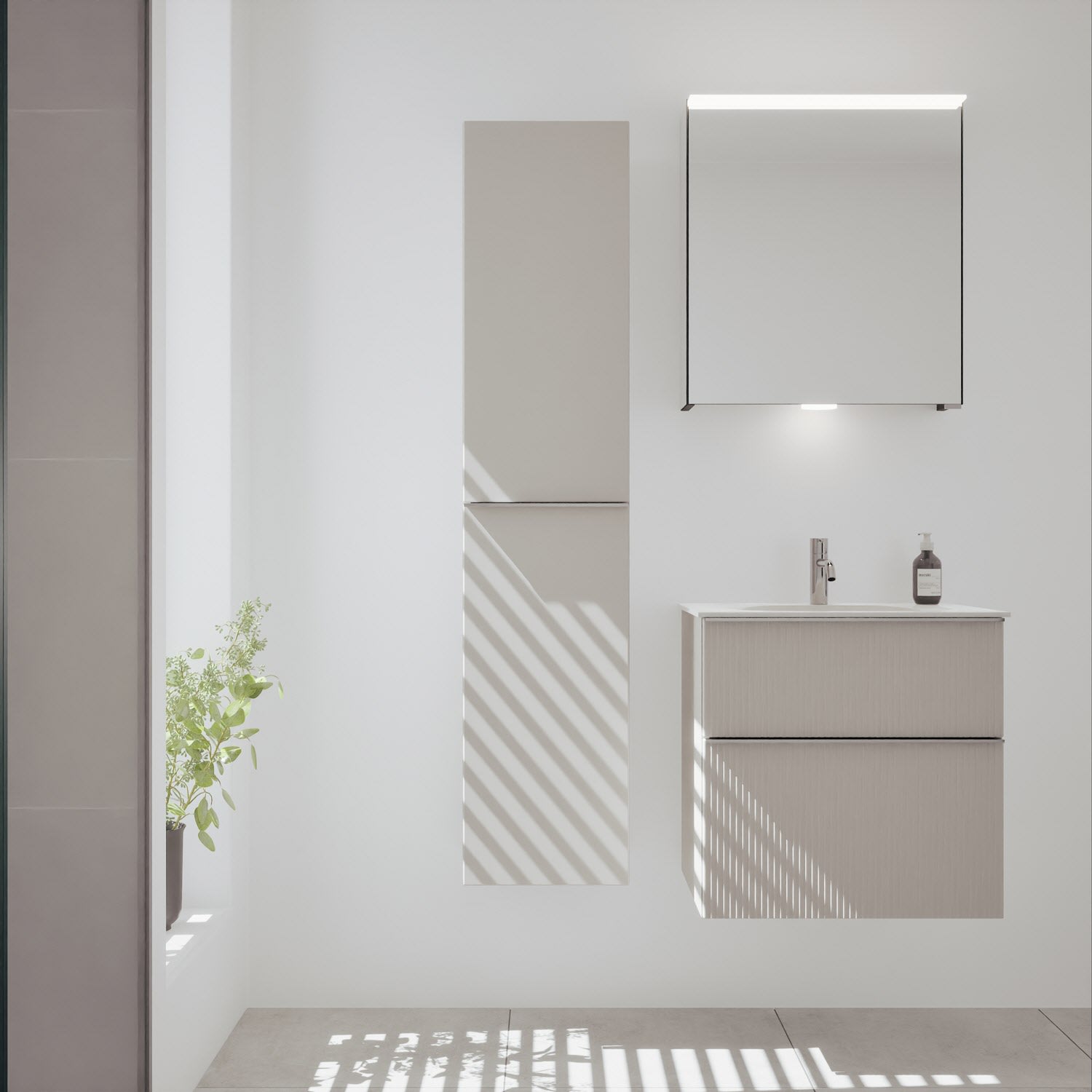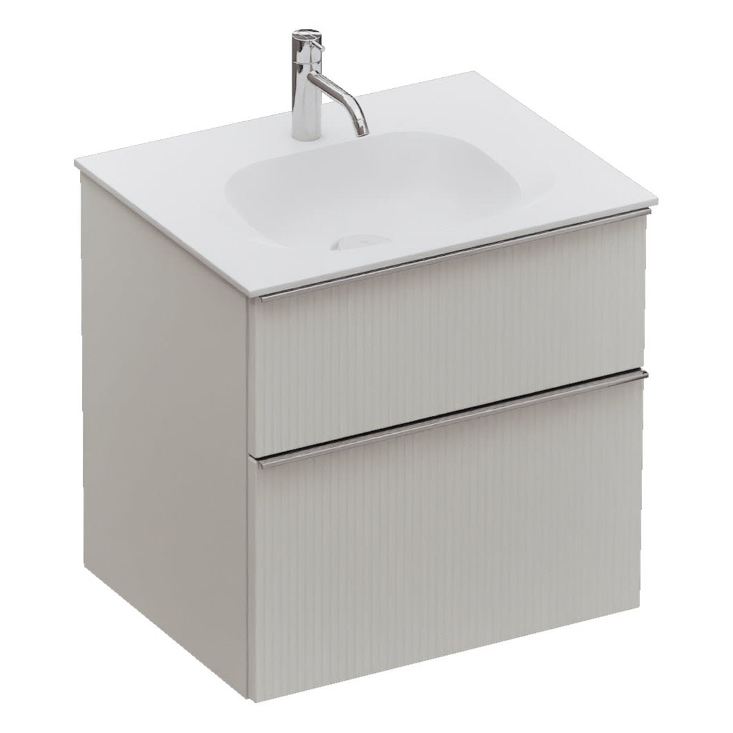 burgbad Fiumo 2.0 Mineralguss-Waschtisch mit Waschtischunterschrank 62 cm, mit Griff G0146