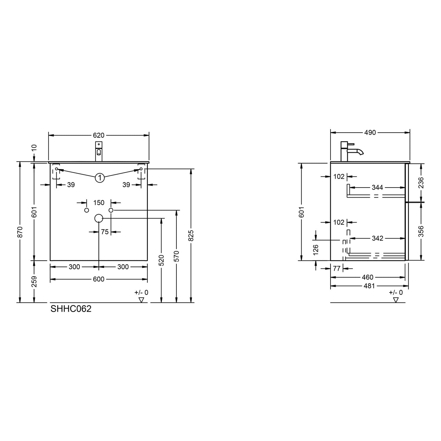 - Waschtischunterschrank, Waschtisch, cleanFlow, Befestigung außer Stockschrauben