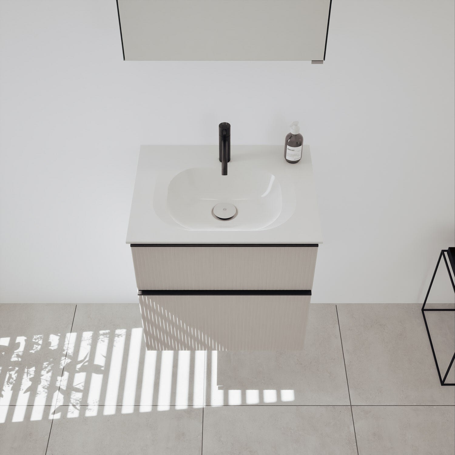 burgbad Fiumo 2.0 Mineralguss-Waschtisch mit Waschtischunterschrank 62 cm, mit Griff G0200
