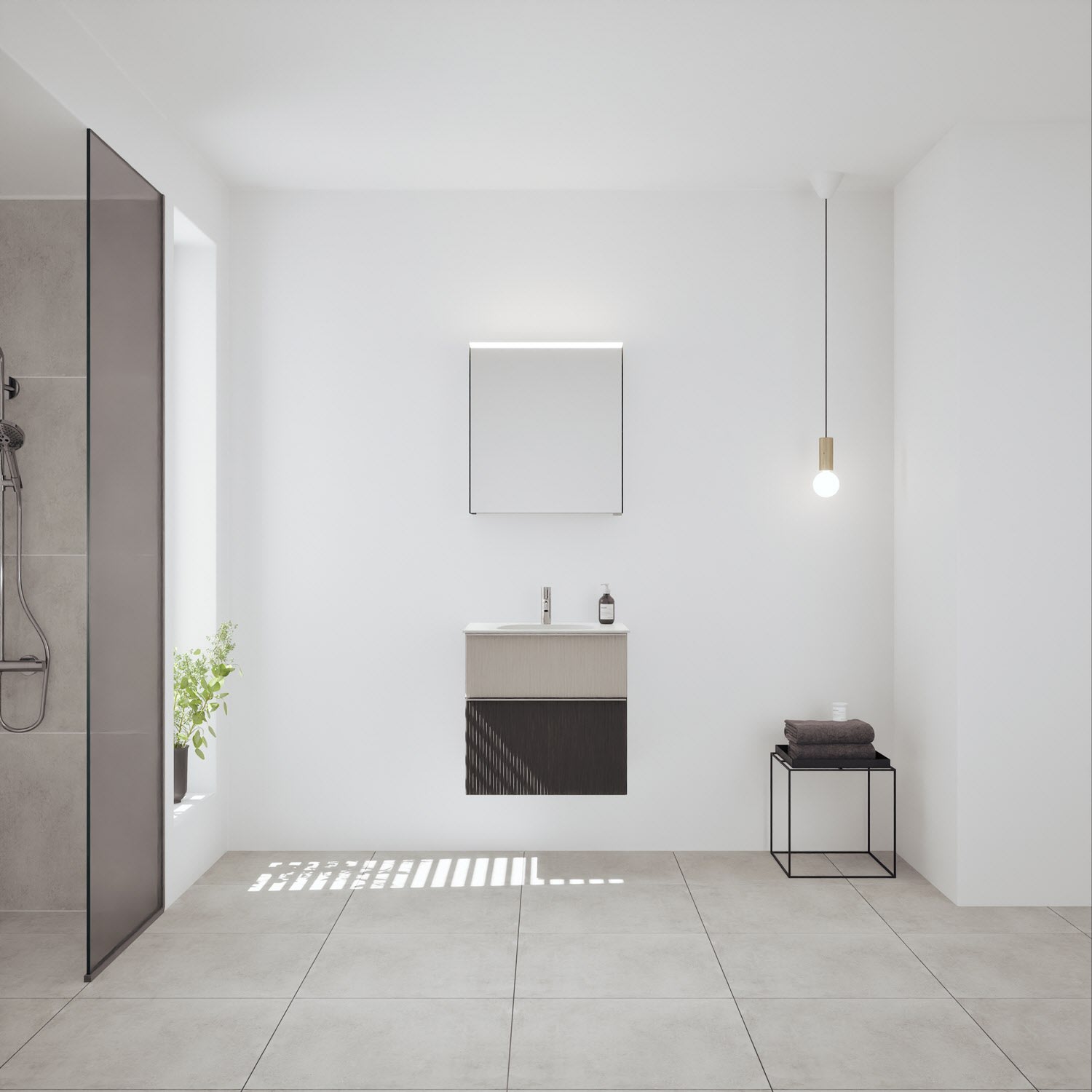 burgbad Fiumo 2.0 Mineralguss-Waschtisch mit Waschtischunterschrank 62 cm, mit Griff G0146