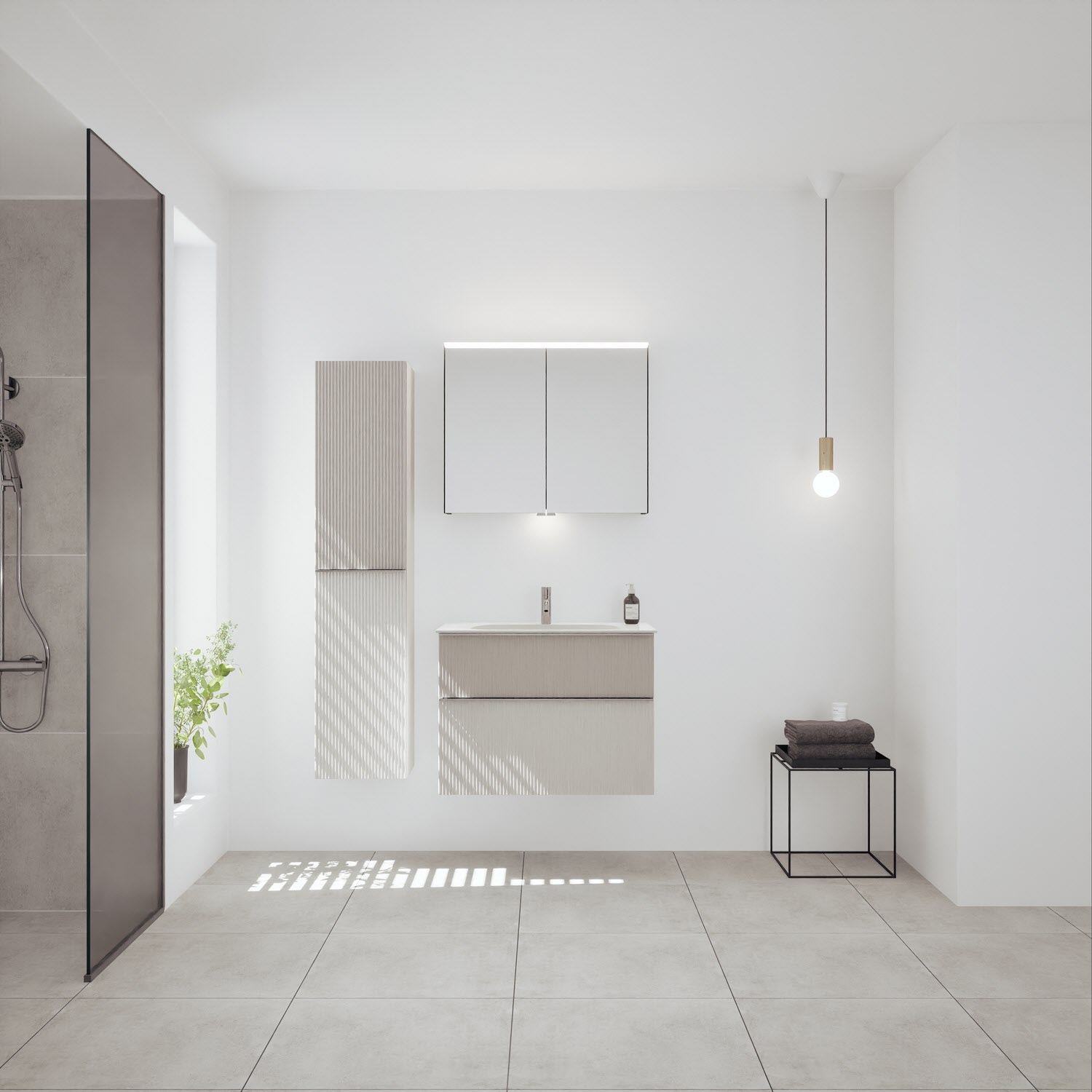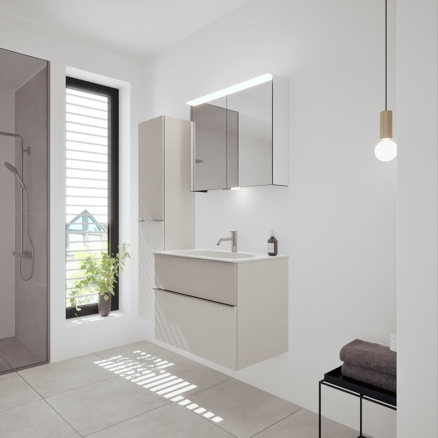 burgbad Fiumo 2.0 Spiegelschrank 80,6 cm mit LED-Aufsatzleuchte und Waschplatzbeleuchtung, 2 Spiegeltüren