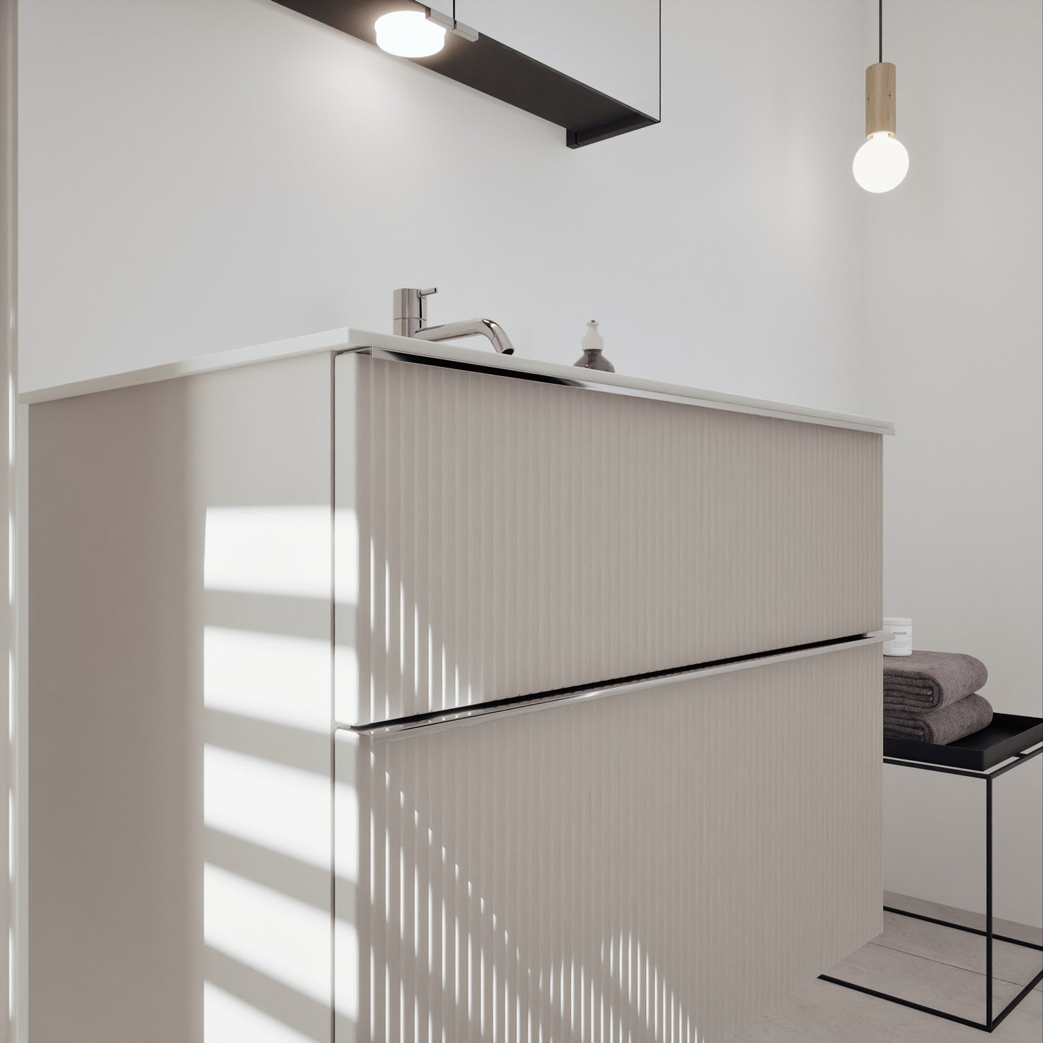 - 1 Auszug unten: 35 cm tief, mit vertikaler Struktur