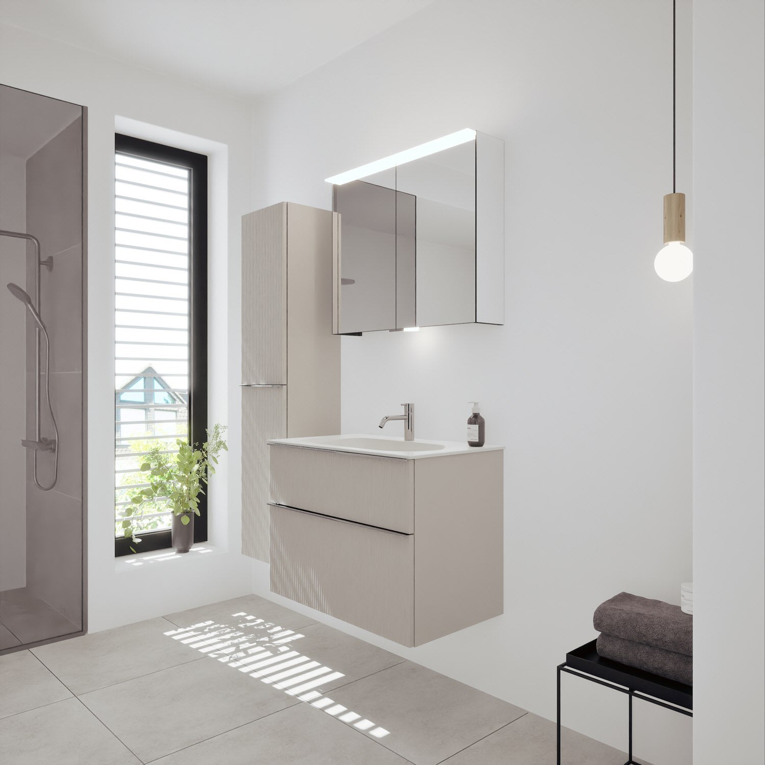 burgbad Fiumo 2.0 Mineralguss-Waschtisch mit Waschtischunterschrank 82 cm, mit Griff G0146