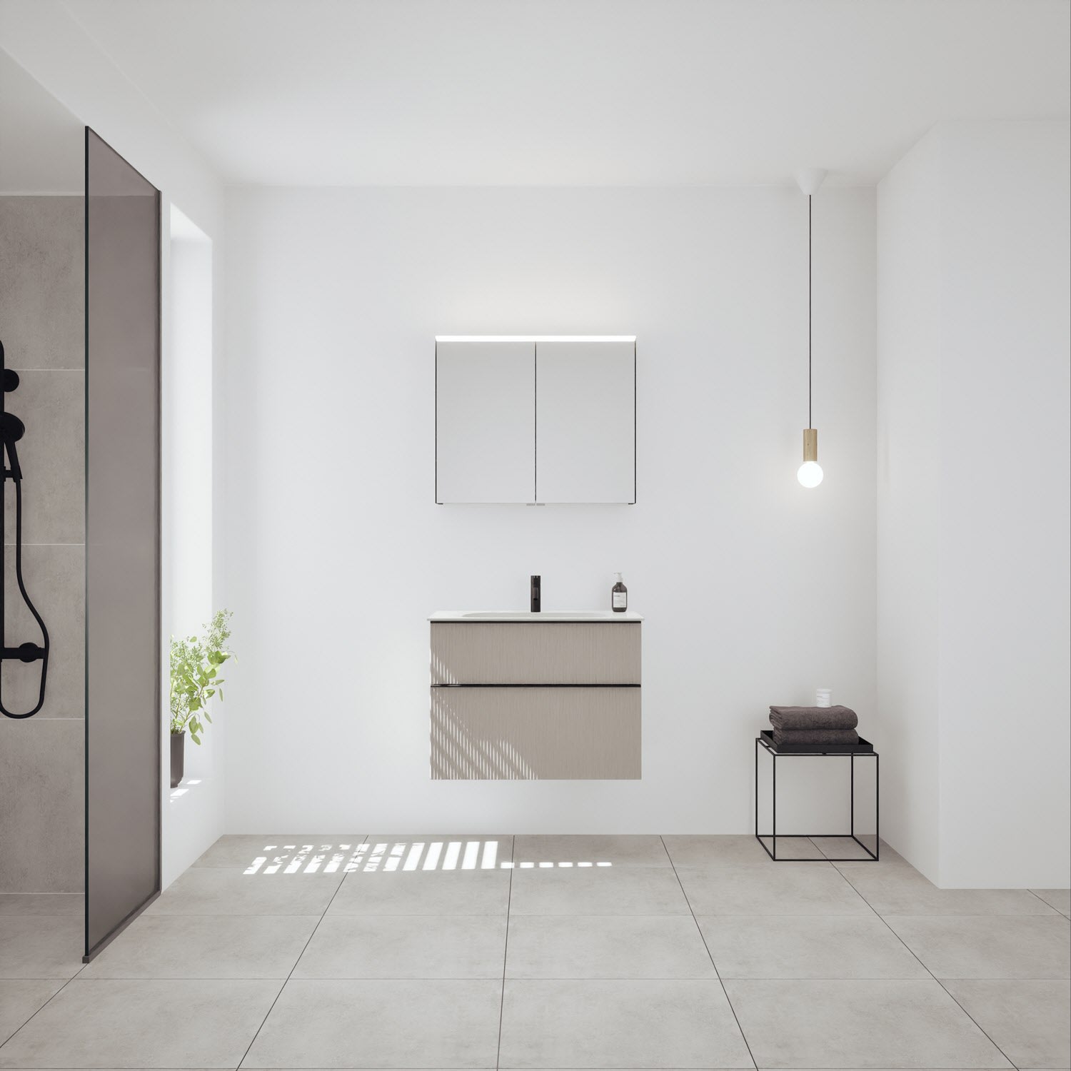 burgbad Fiumo 2.0 Mineralguss-Waschtisch mit Waschtischunterschrank 82 cm, mit Griff G0200