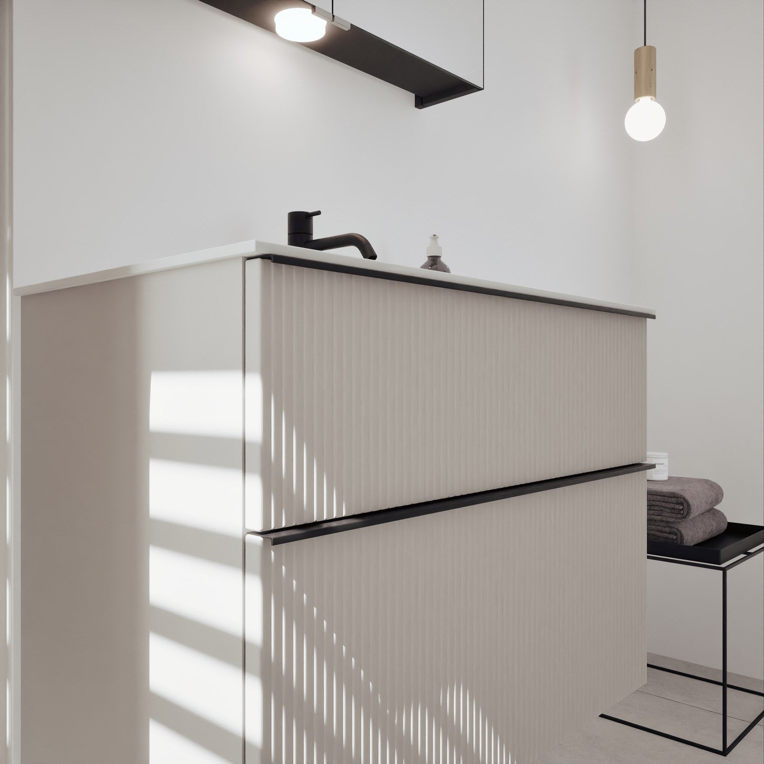 - 1 Auszug unten: 35 cm tief, mit vertikaler Struktur
