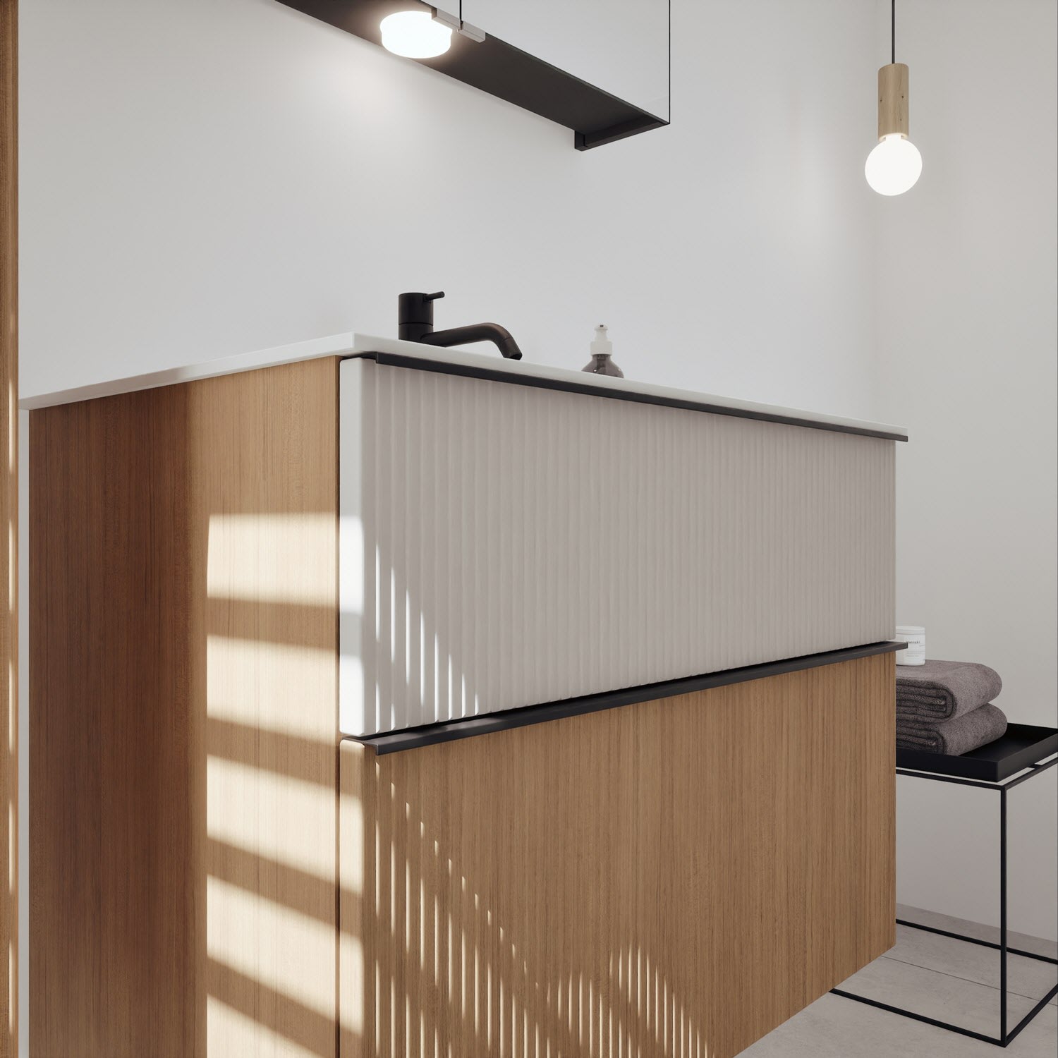 - 1 Auszug unten: 35 cm tief, mit vertikaler Struktur