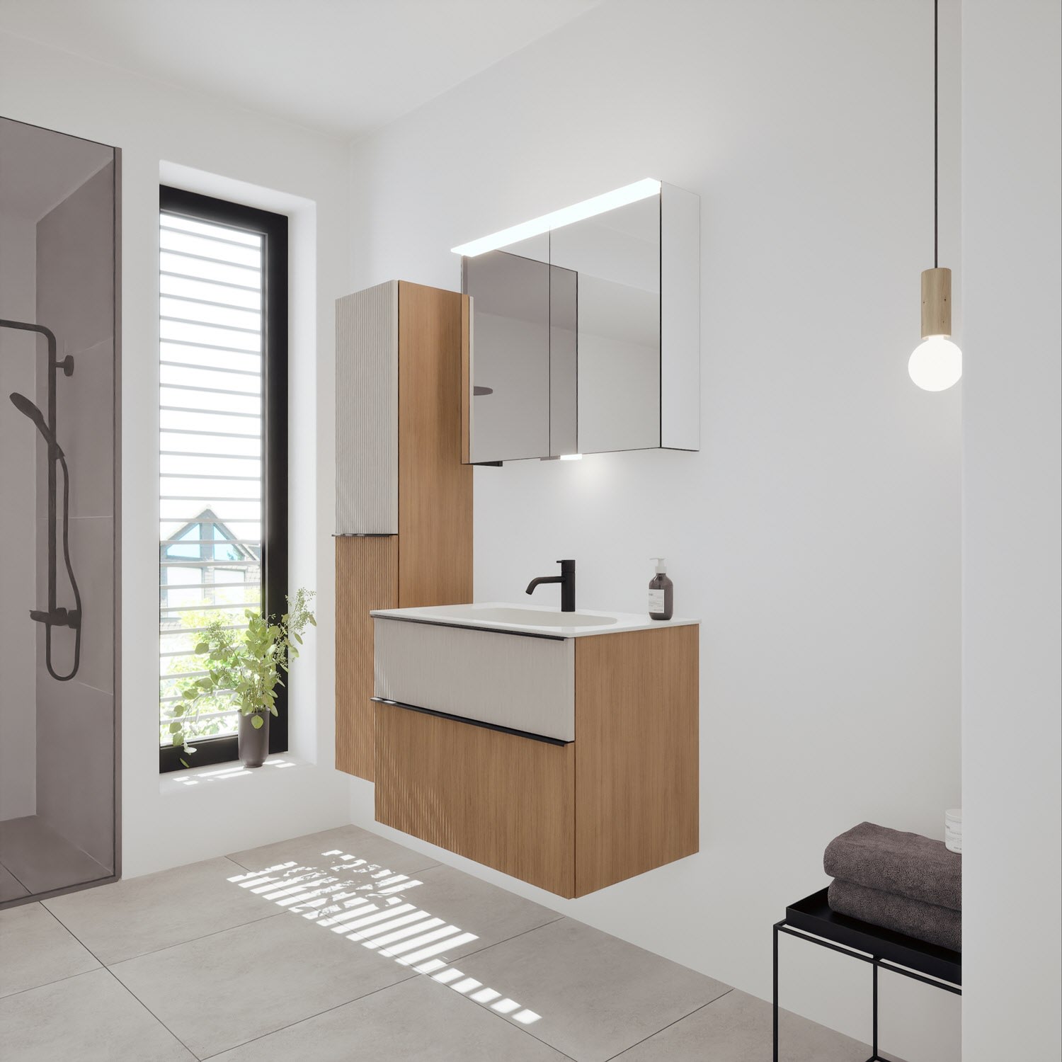 burgbad Fiumo 2.0 Mineralguss-Waschtisch mit Waschtischunterschrank 82 cm, mit Griff G0200