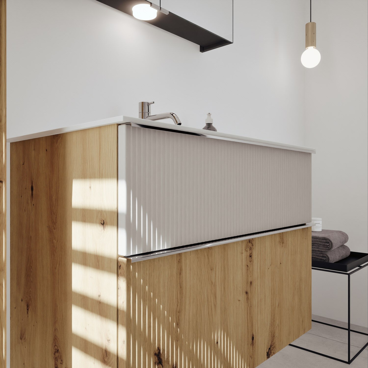 - 1 Auszug unten: 35 cm tief, mit vertikaler Struktur