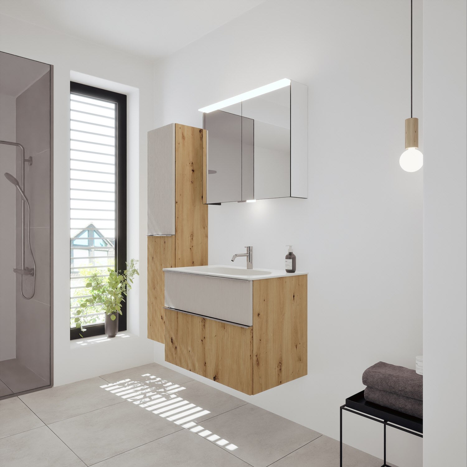 burgbad Fiumo 2.0 Mineralguss-Waschtisch mit Waschtischunterschrank 82 cm, mit Griff G0146