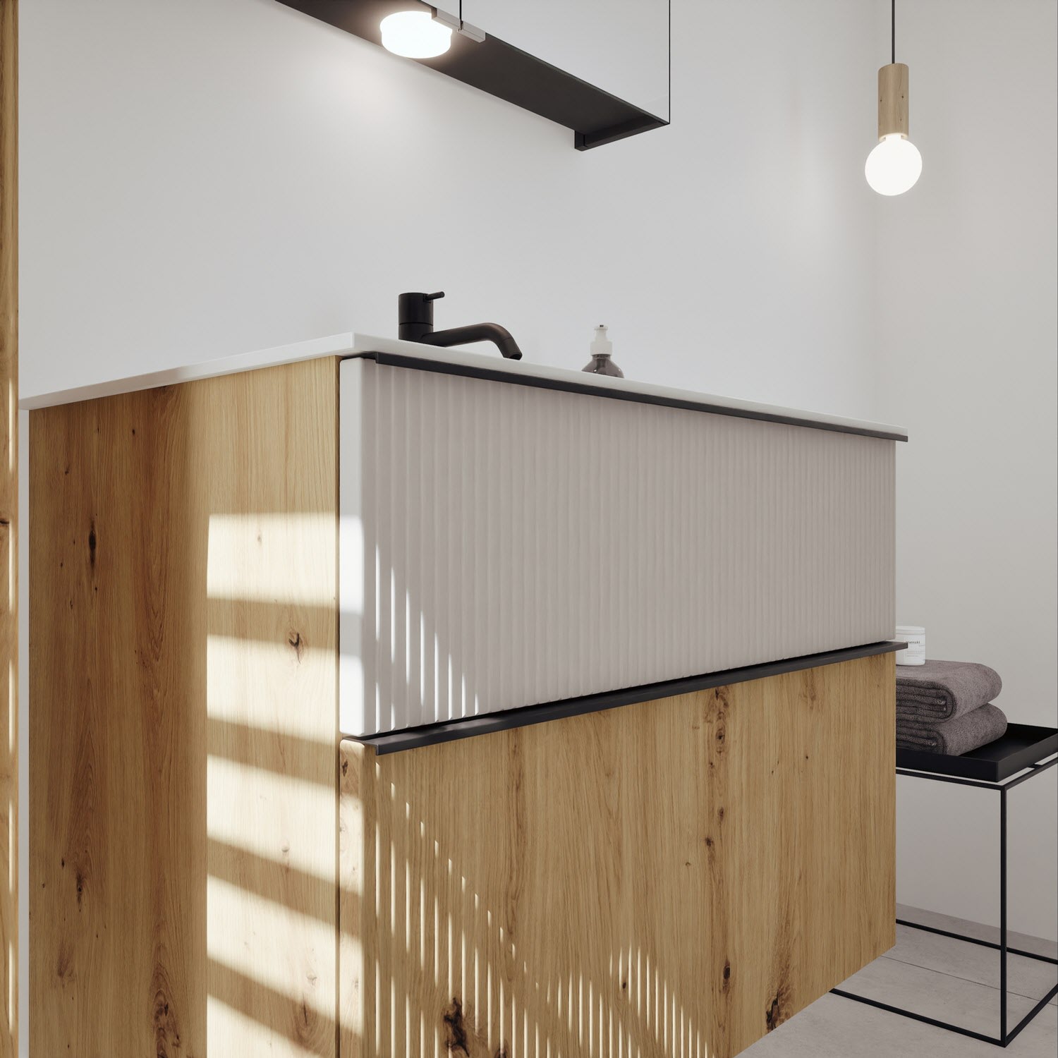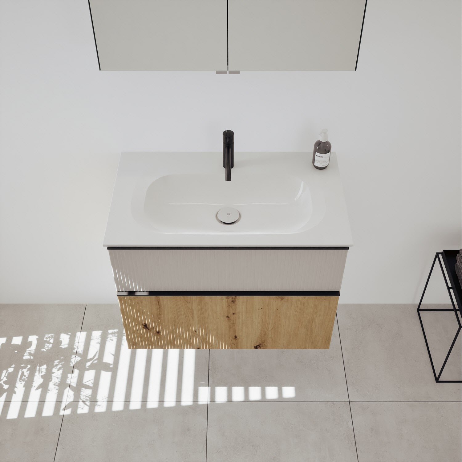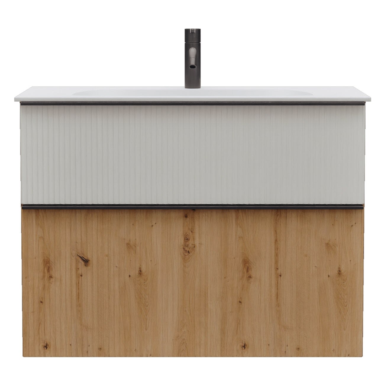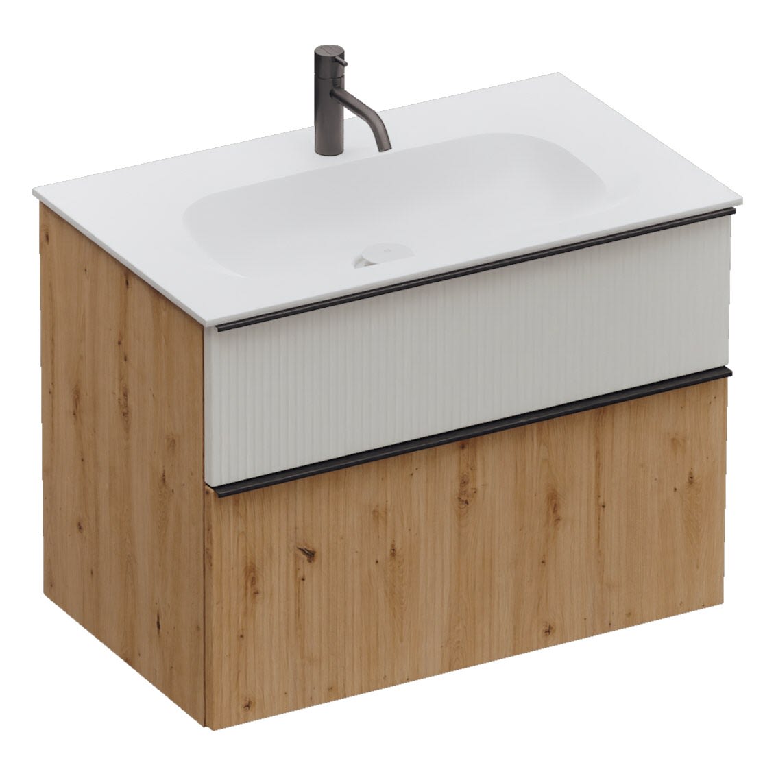 burgbad Fiumo 2.0 Mineralguss-Waschtisch mit Waschtischunterschrank 82 cm, mit Griff G0200