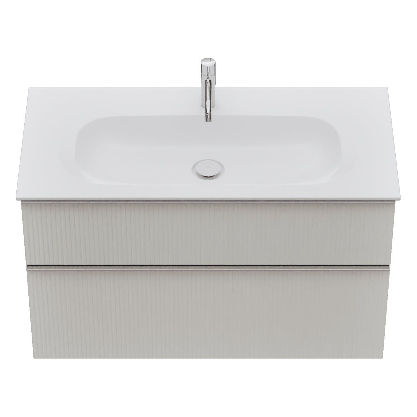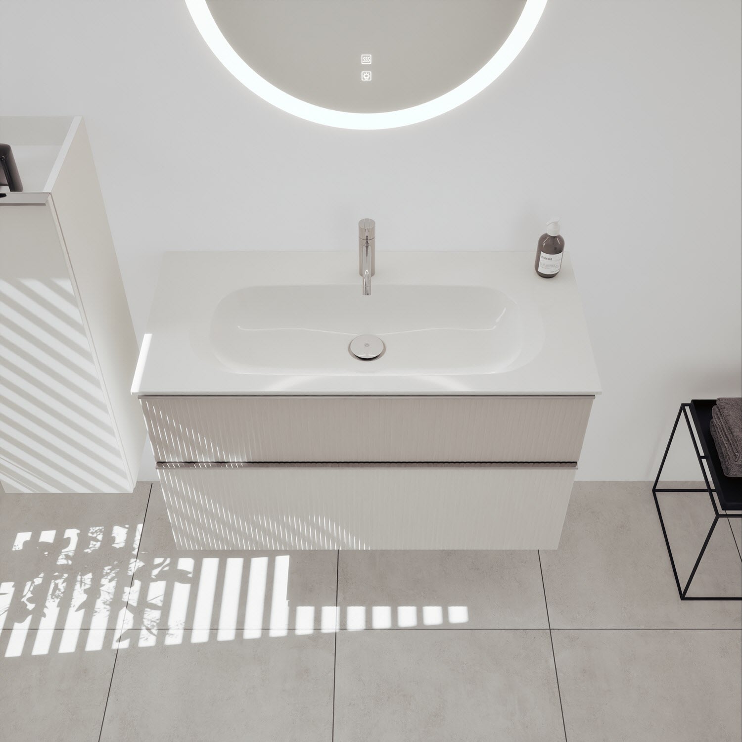burgbad Fiumo 2.0 Mineralguss-Waschtisch mit Waschtischunterschrank 102 cm, mit Griff G0146