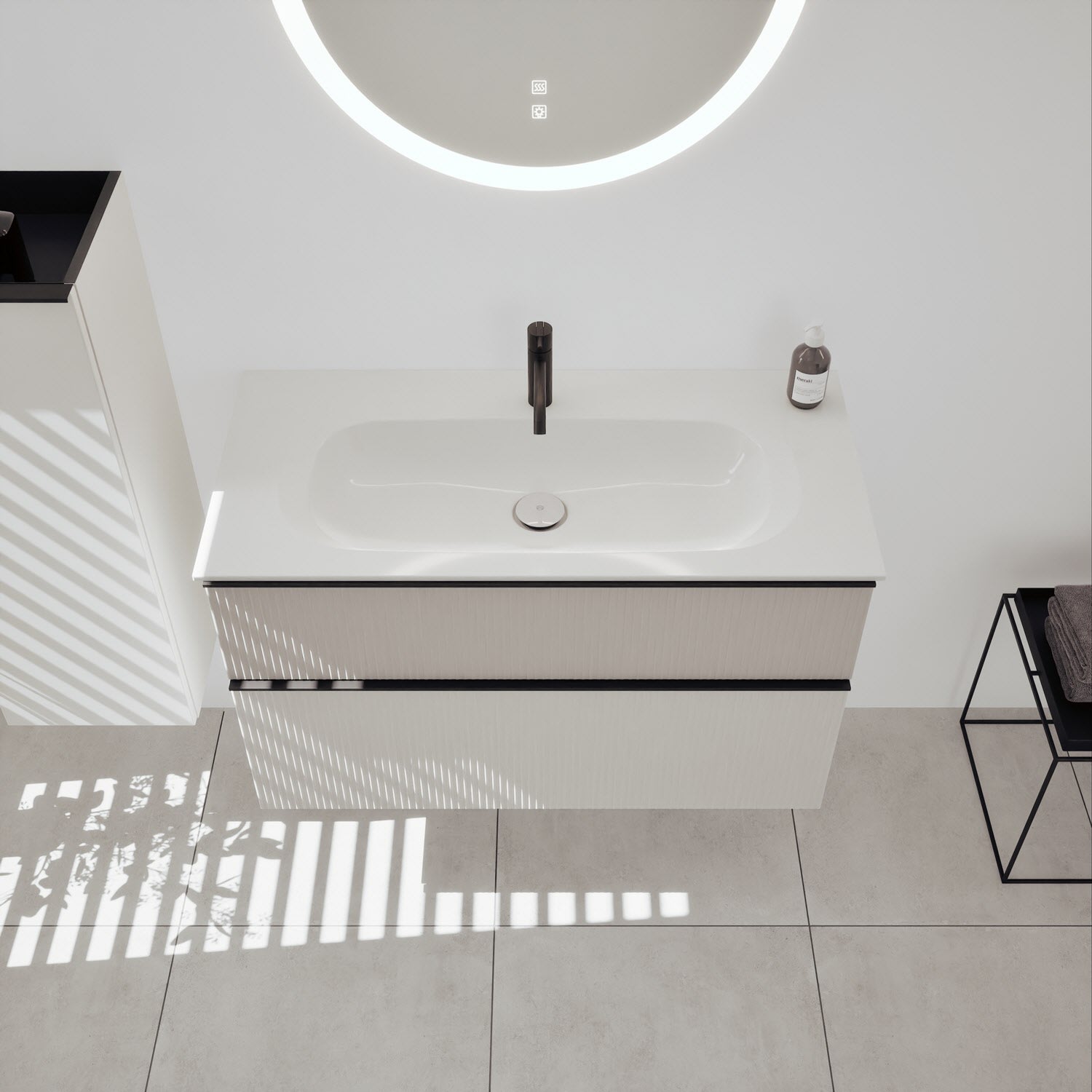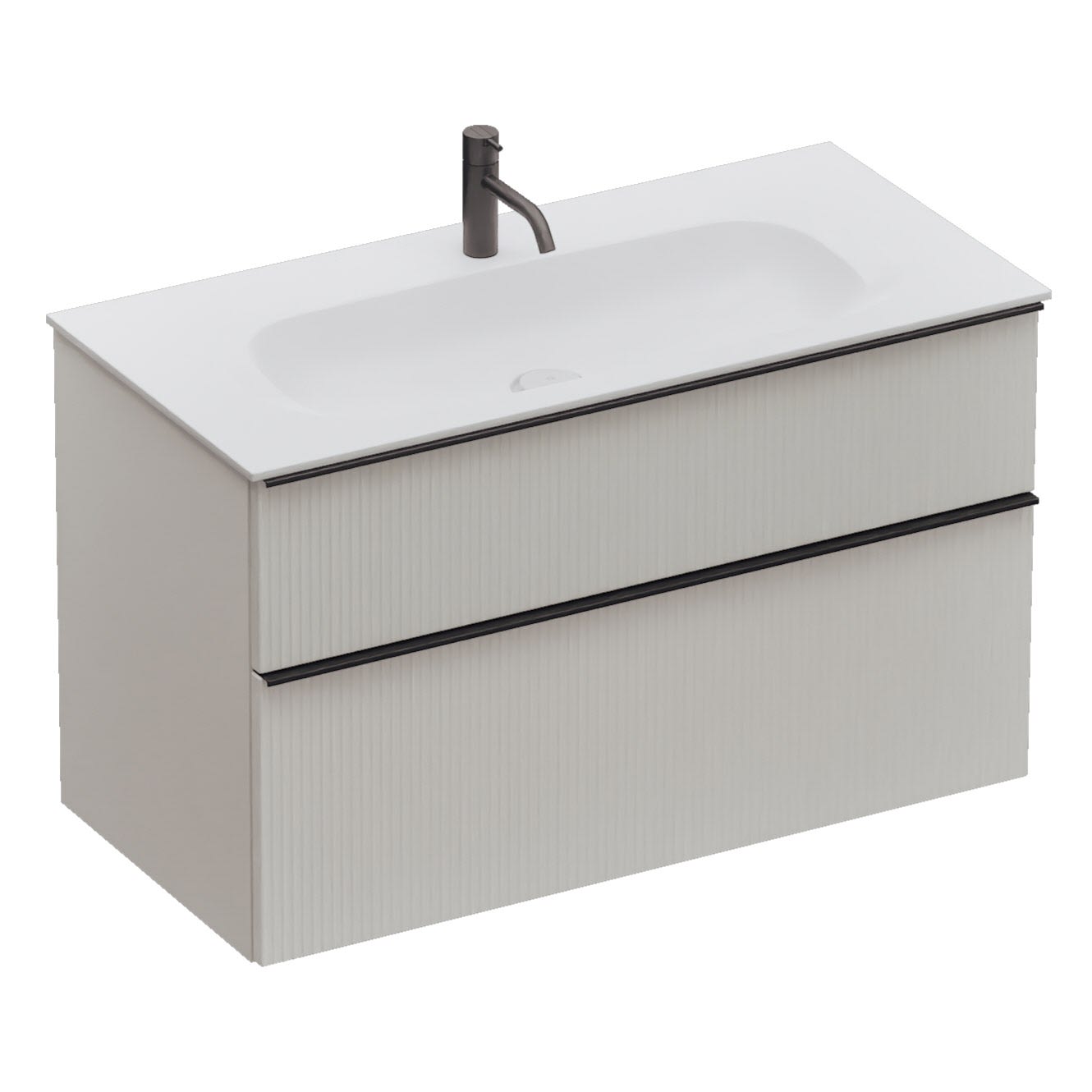 burgbad Fiumo 2.0 Mineralguss-Waschtisch mit Waschtischunterschrank 102 cm, mit Griff G0200