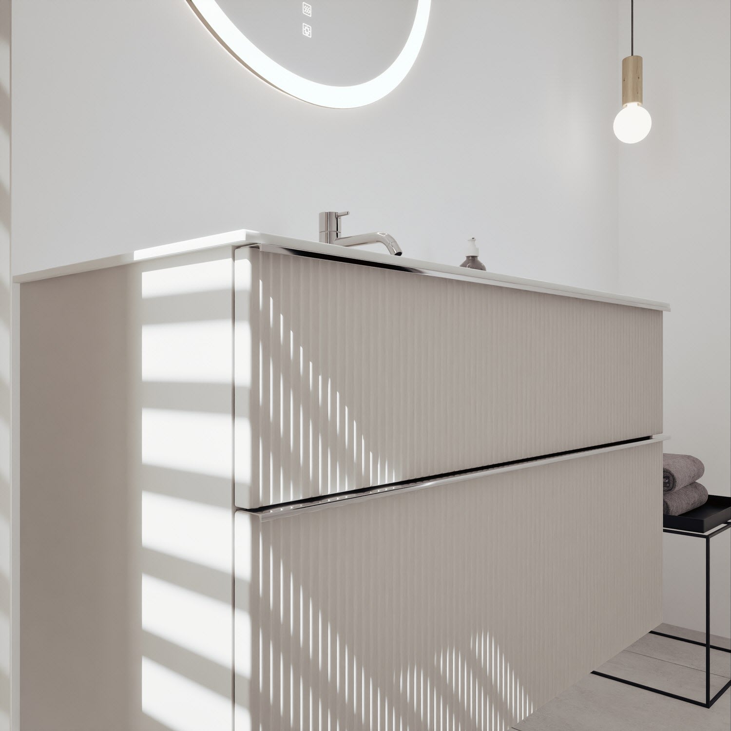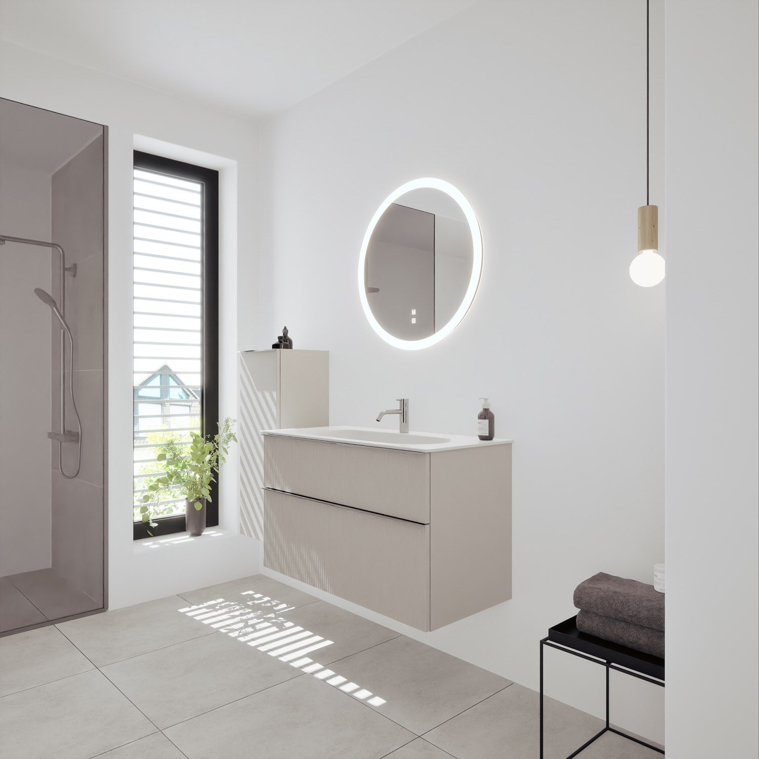 burgbad Fiumo 2.0 Mineralguss-Waschtisch mit Waschtischunterschrank 102 cm, mit Griff G0146