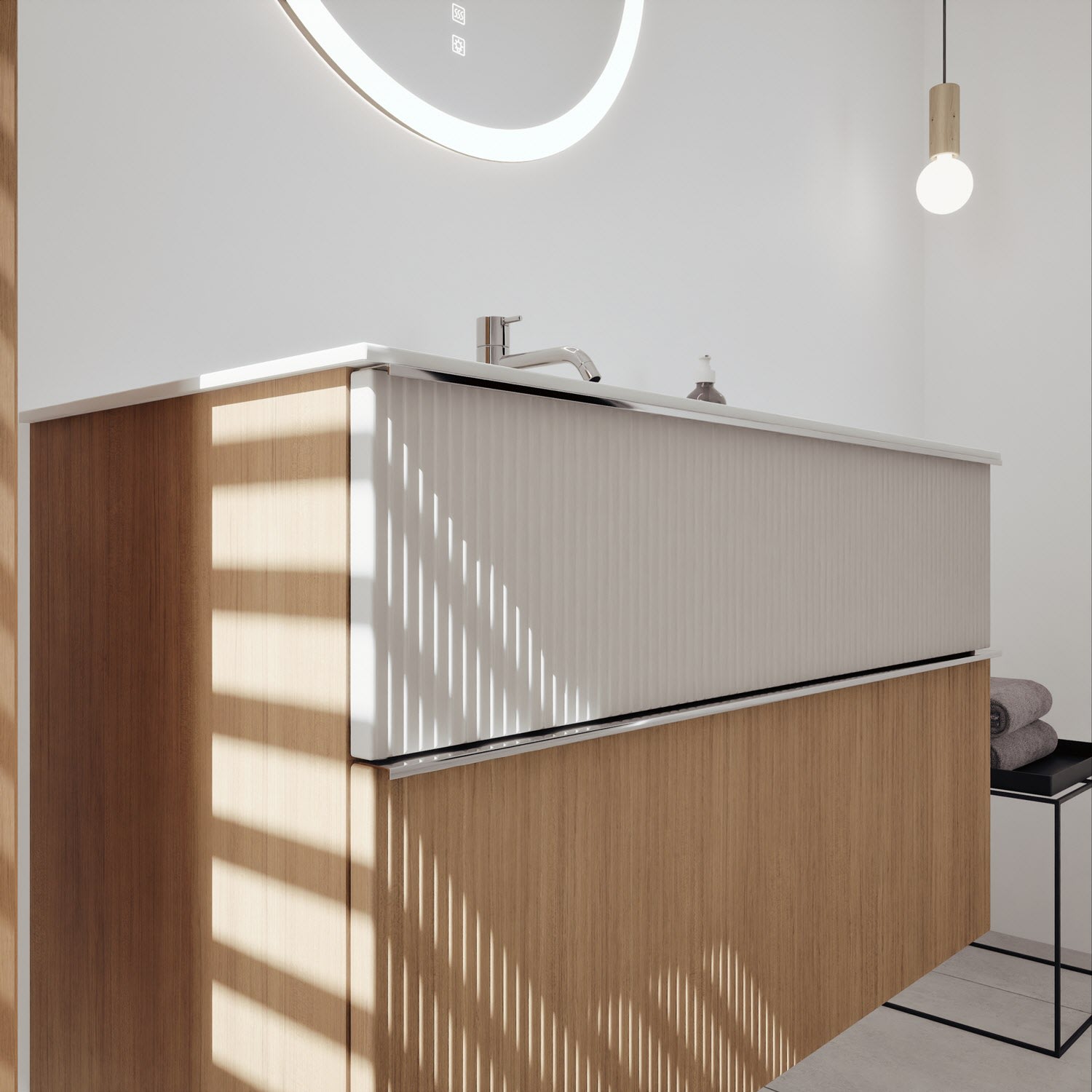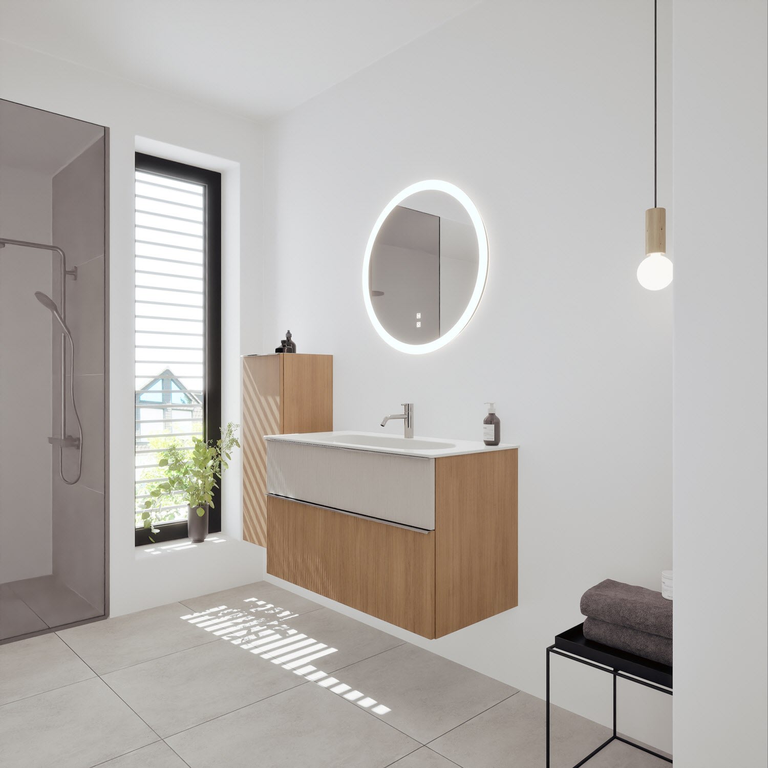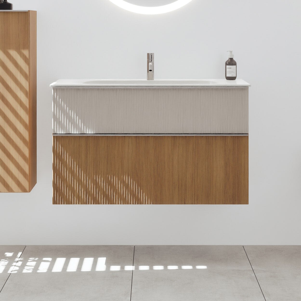 burgbad Fiumo 2.0 Mineralguss-Waschtisch mit Waschtischunterschrank 102 cm, mit Griff G0146