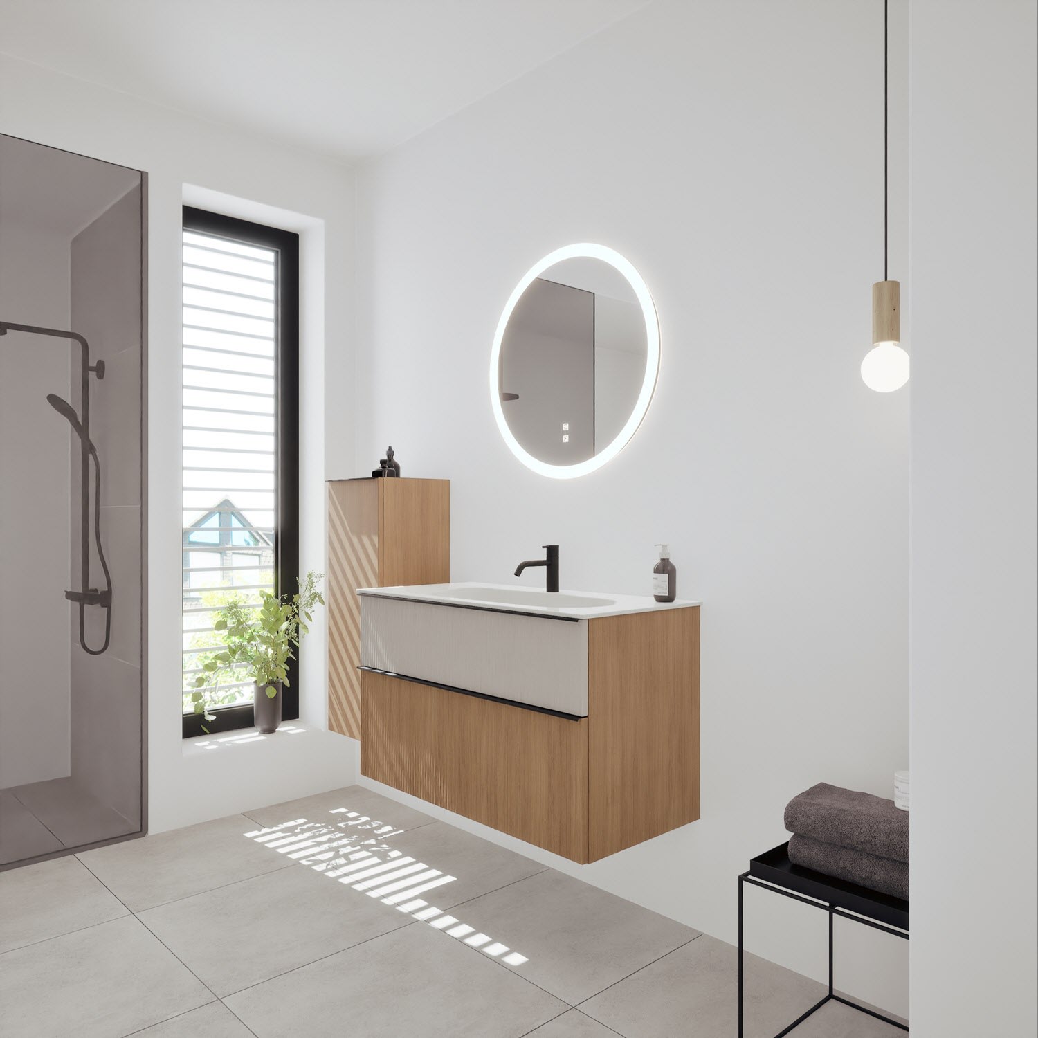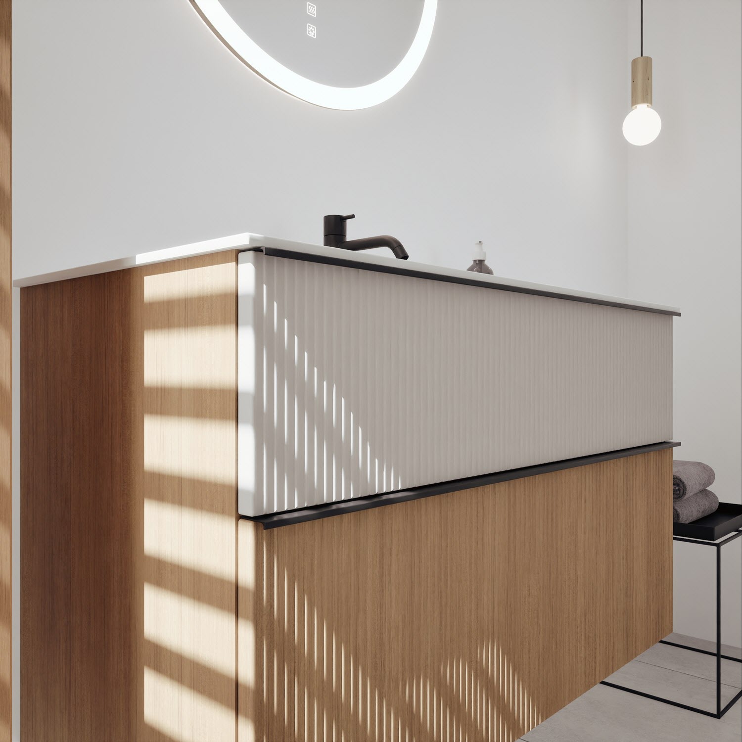 burgbad Fiumo 2.0 Mineralguss-Waschtisch mit Waschtischunterschrank 102 cm, mit Griff G0200