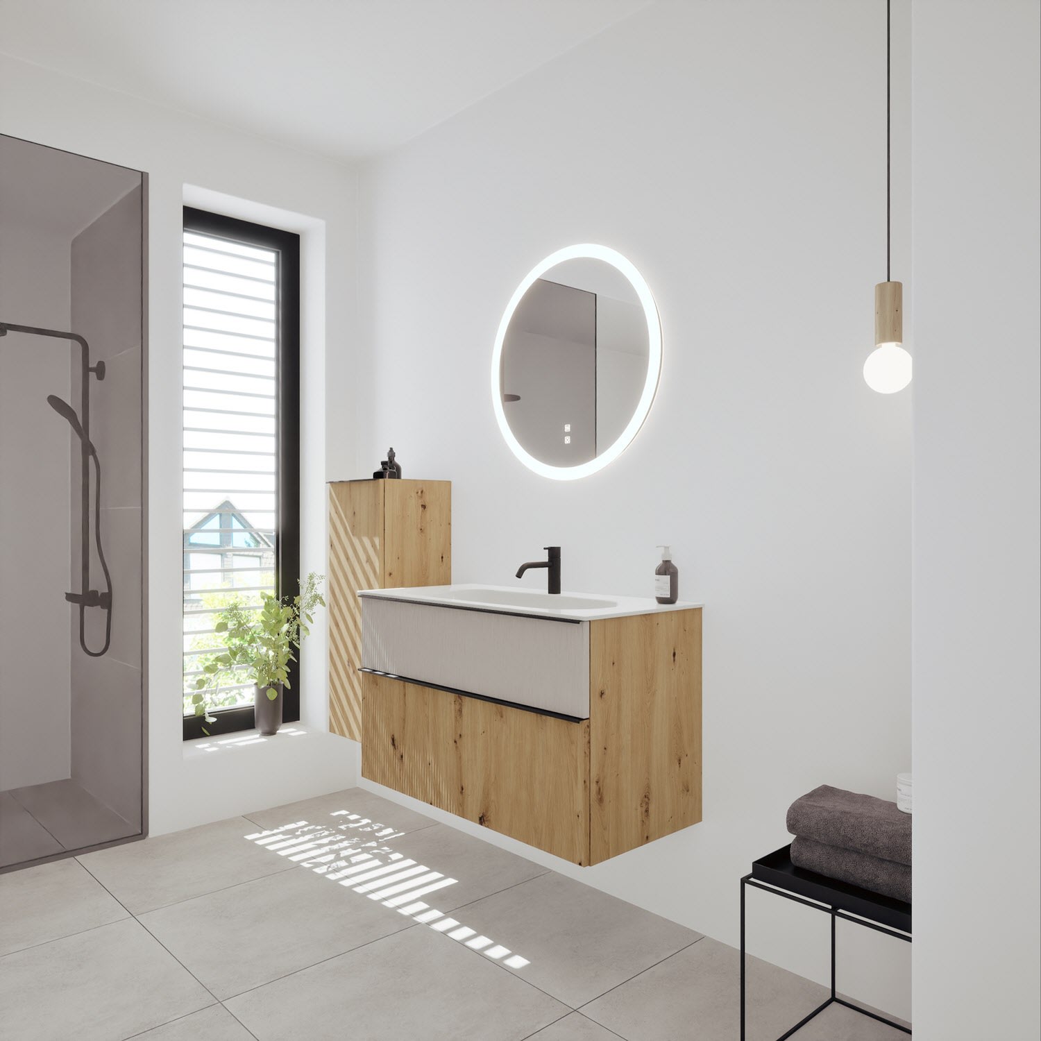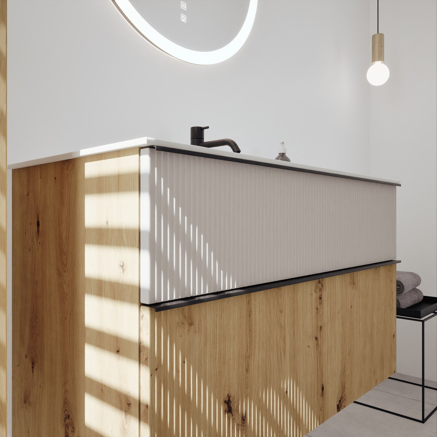 burgbad Fiumo 2.0 Mineralguss-Waschtisch mit Waschtischunterschrank 102 cm, mit Griff G0200