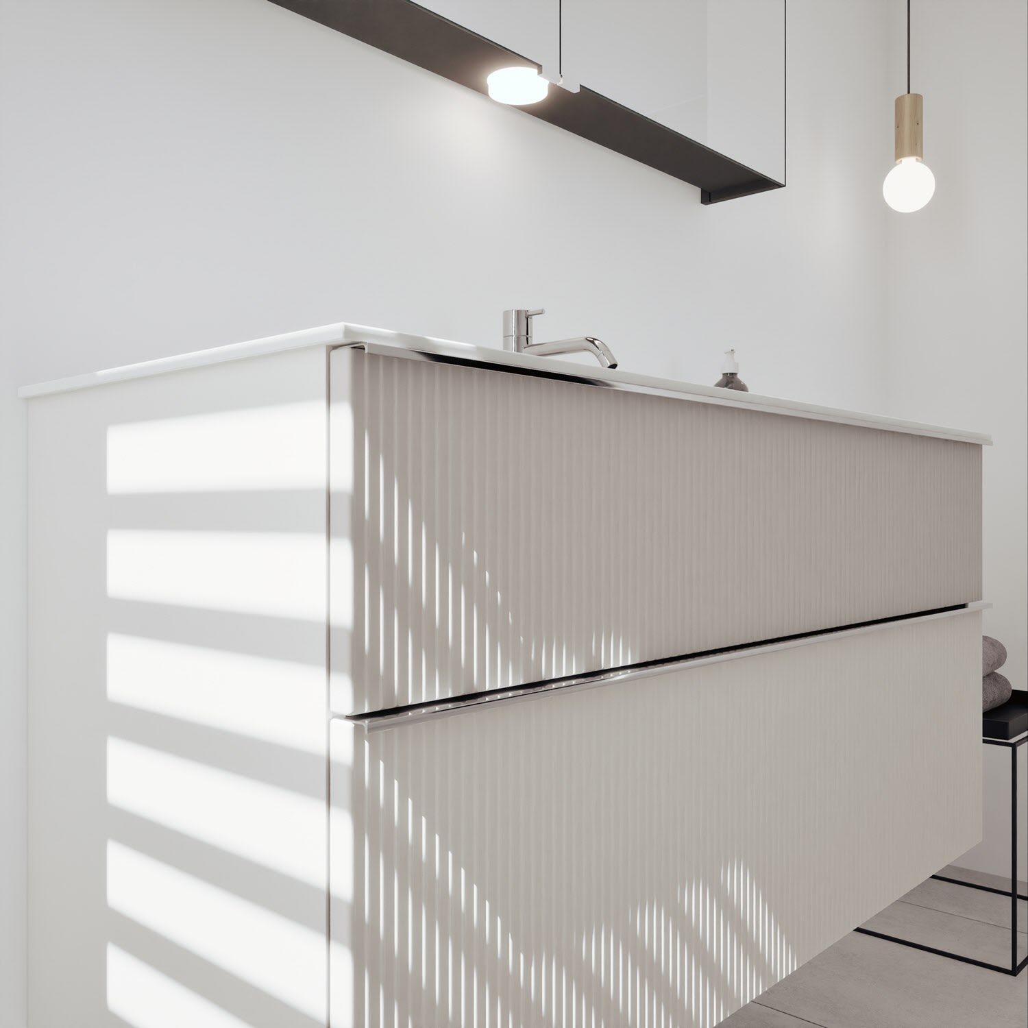 burgbad Fiumo 2.0 Mineralguss-Waschtisch mit Waschtischunterschrank 122 cm, mit Griff G0146