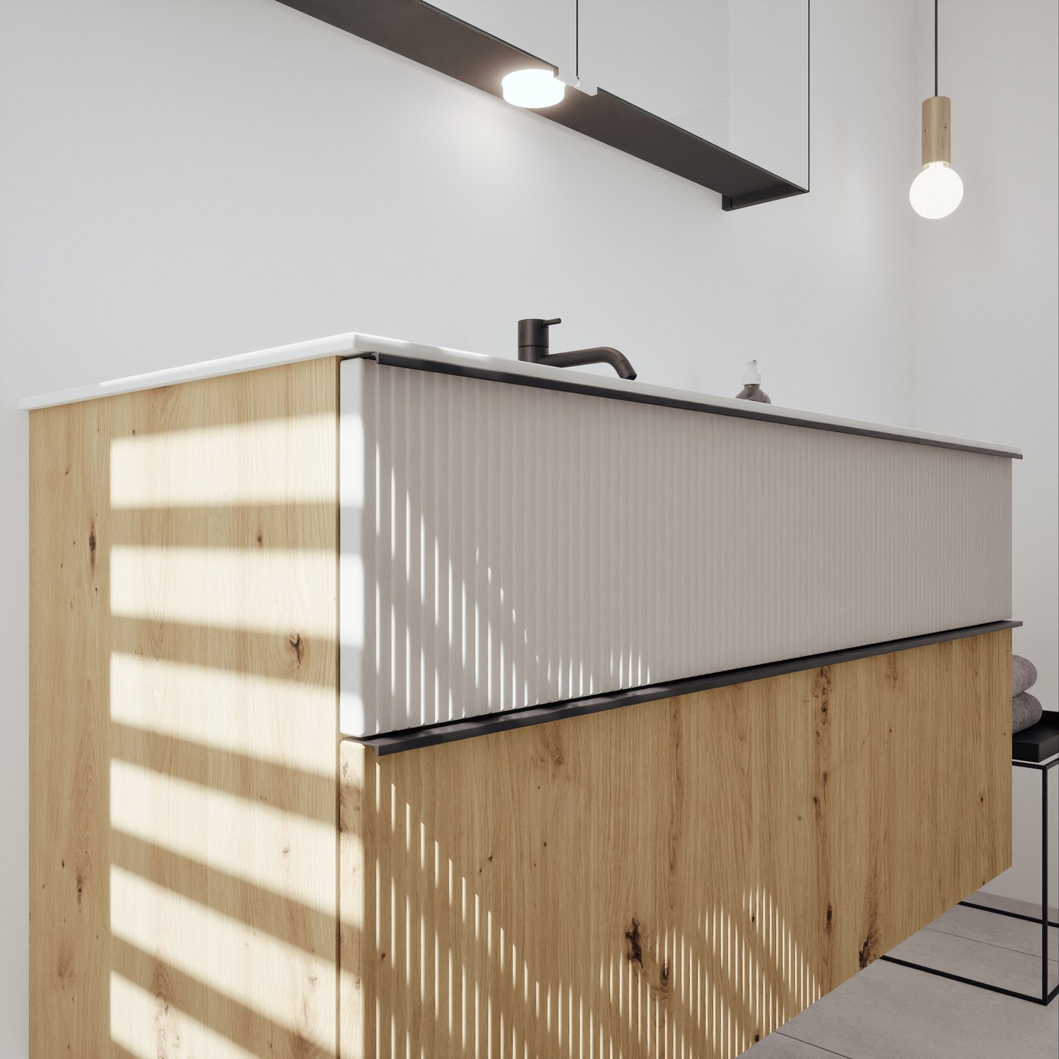 burgbad Fiumo 2.0 Mineralguss-Waschtisch mit Waschtischunterschrank 122 cm, mit Griff G0200