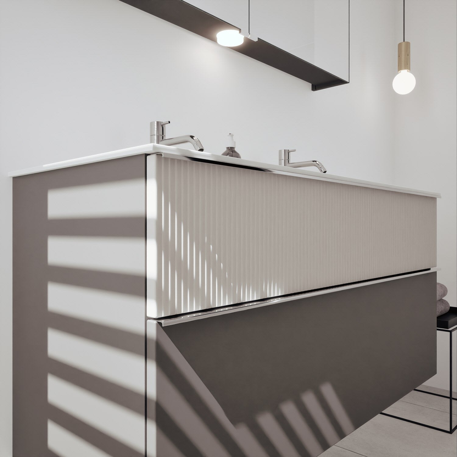 burgbad Fiumo 2.0 Mineralguss-Waschtisch mit Waschtischunterschrank 122 cm, mit Griff G0146
