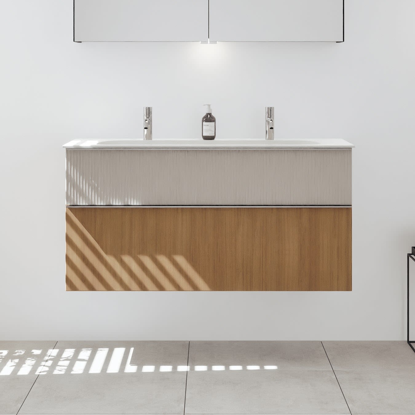 burgbad Fiumo 2.0 Spiegelschrank 120,6 cm mit LED-Aufsatzleuchte und Waschplatzbeleuchtung, 2 Spiegeltüren