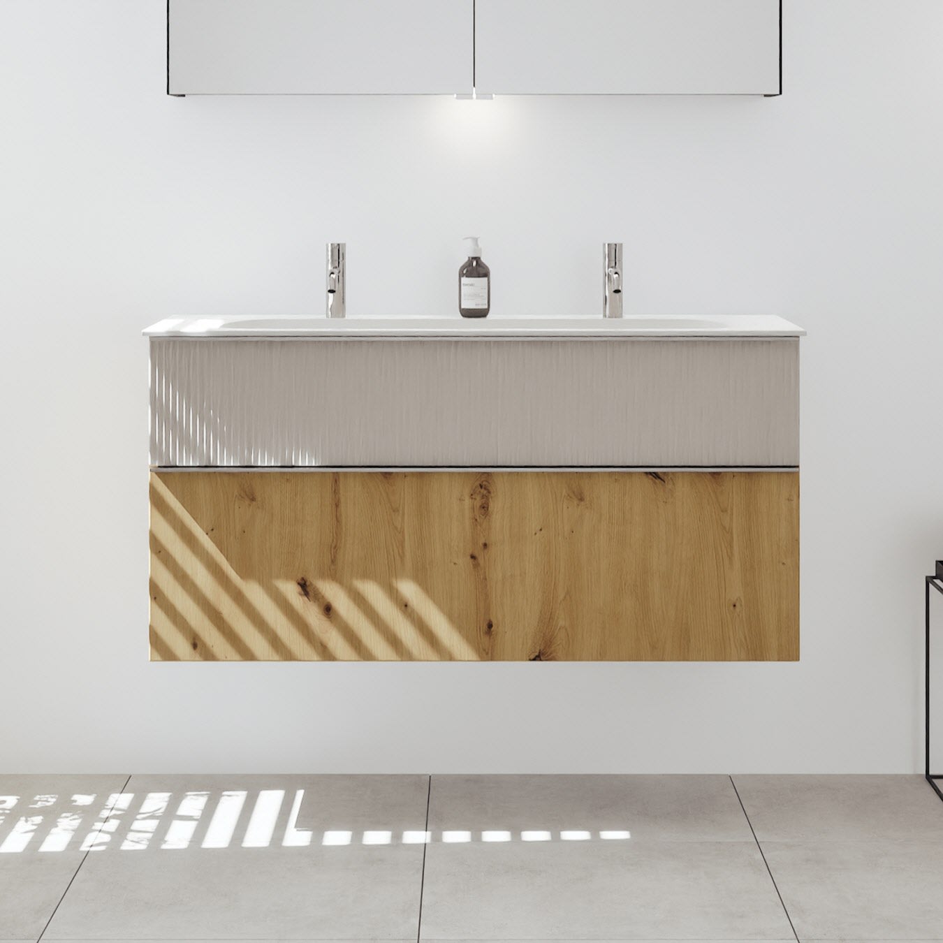 burgbad Fiumo 2.0 Spiegelschrank 120,6 cm mit LED-Aufsatzleuchte und Waschplatzbeleuchtung, 2 Spiegeltüren