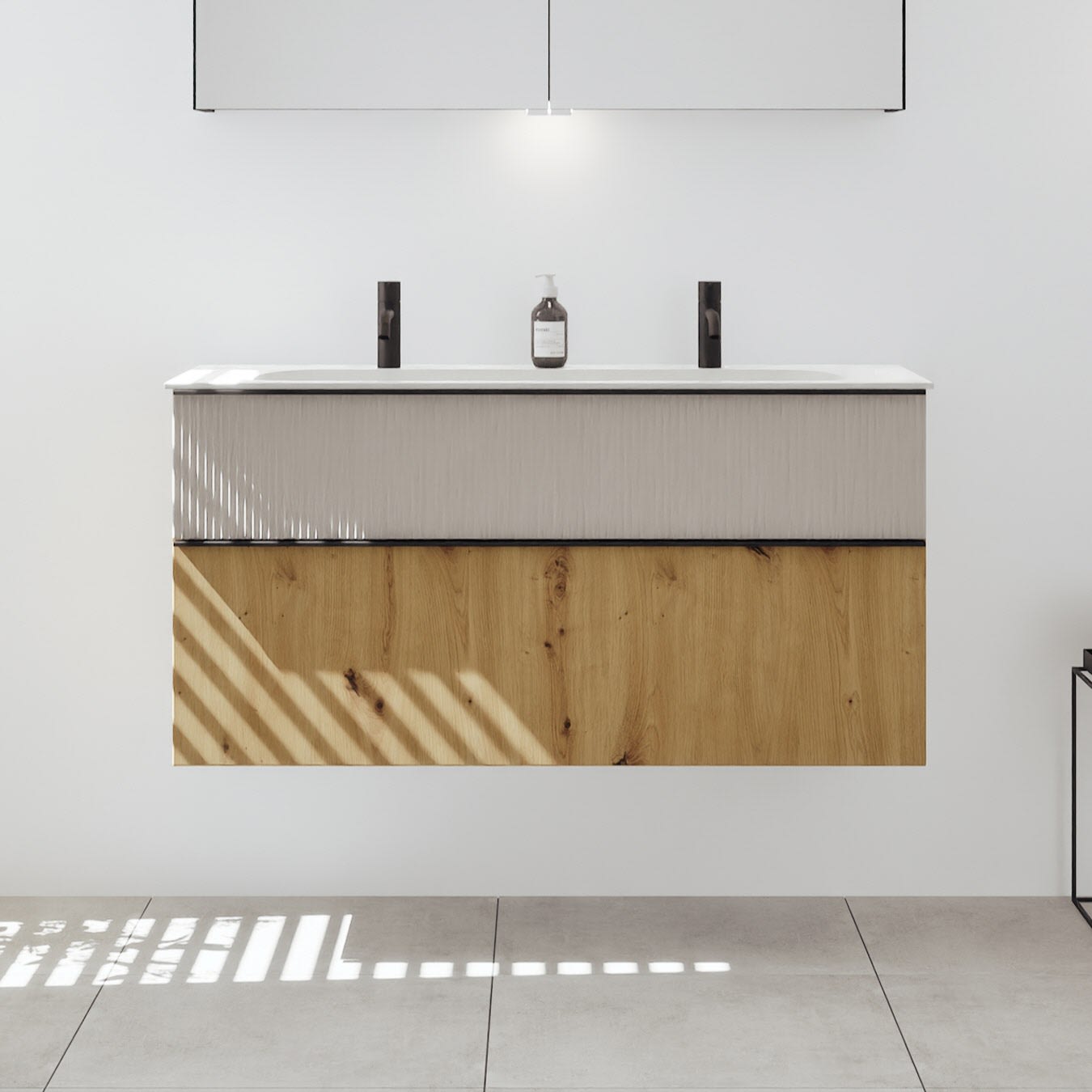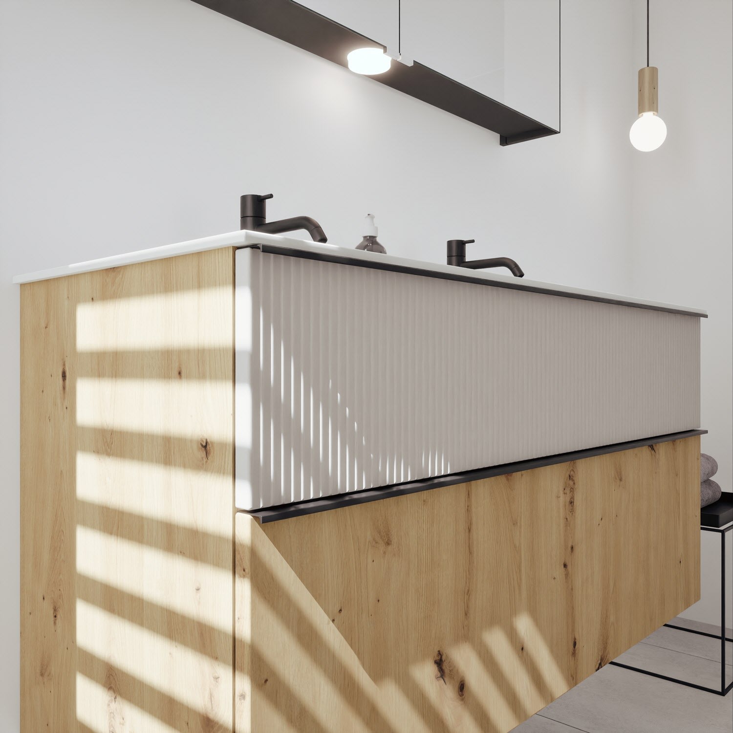 burgbad Fiumo 2.0 Mineralguss-Waschtisch mit Waschtischunterschrank 122 cm, mit Griff G0200
