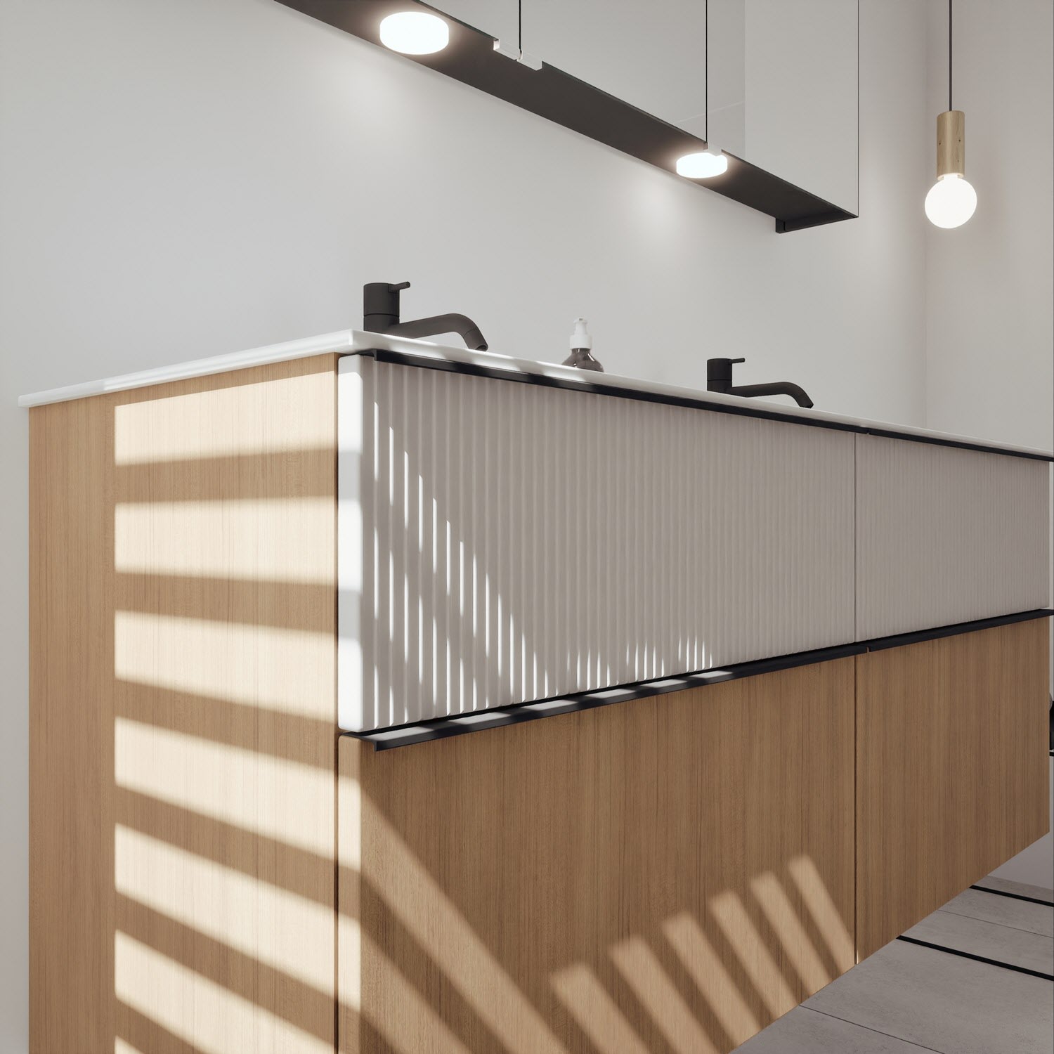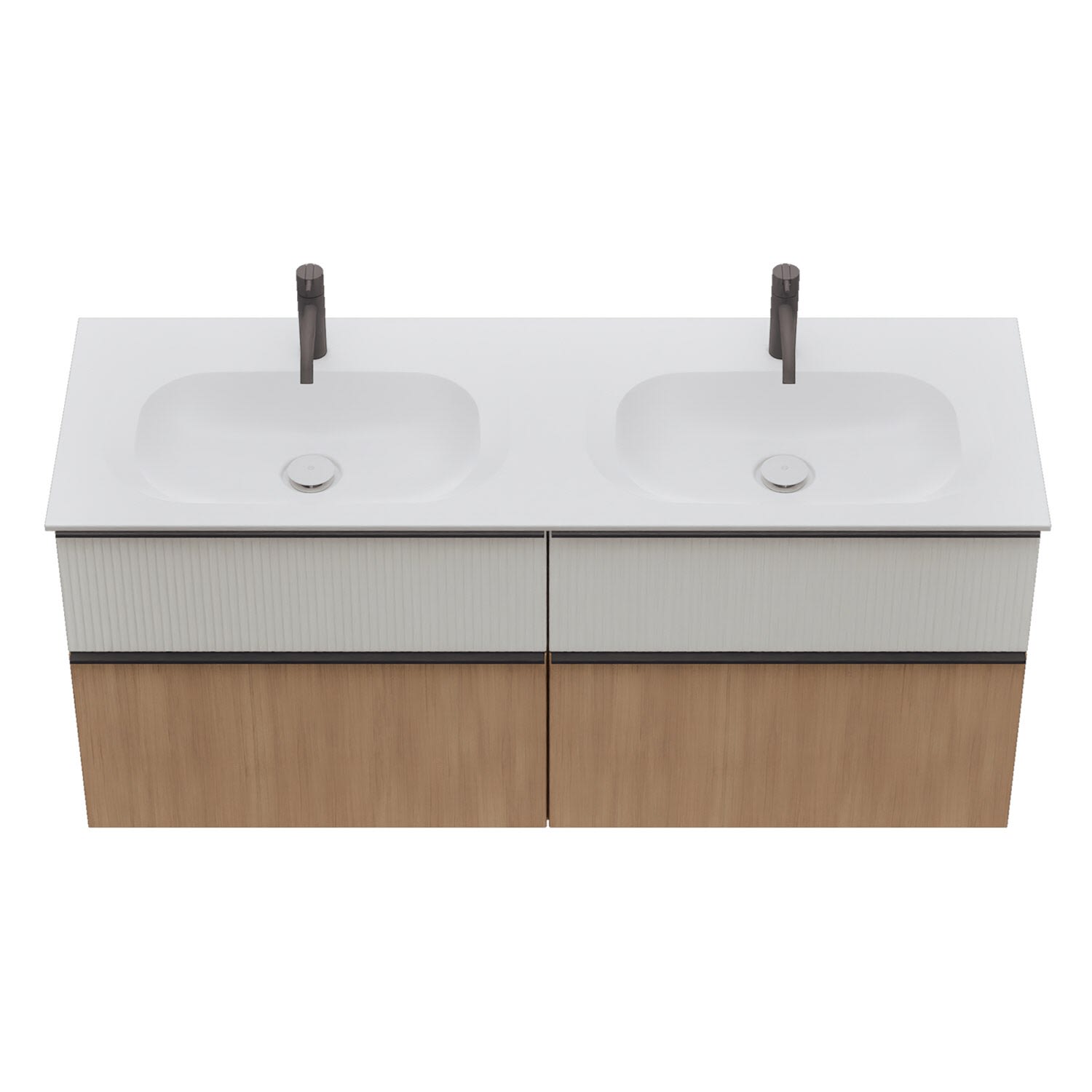 burgbad Fiumo 2.0 Mineralguss-Waschtisch mit Waschtischunterschrank 142 cm, mit Griff G0200