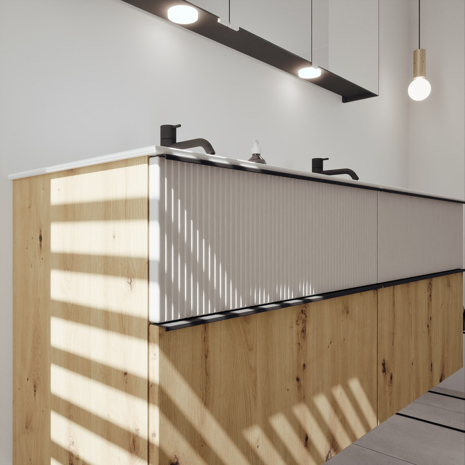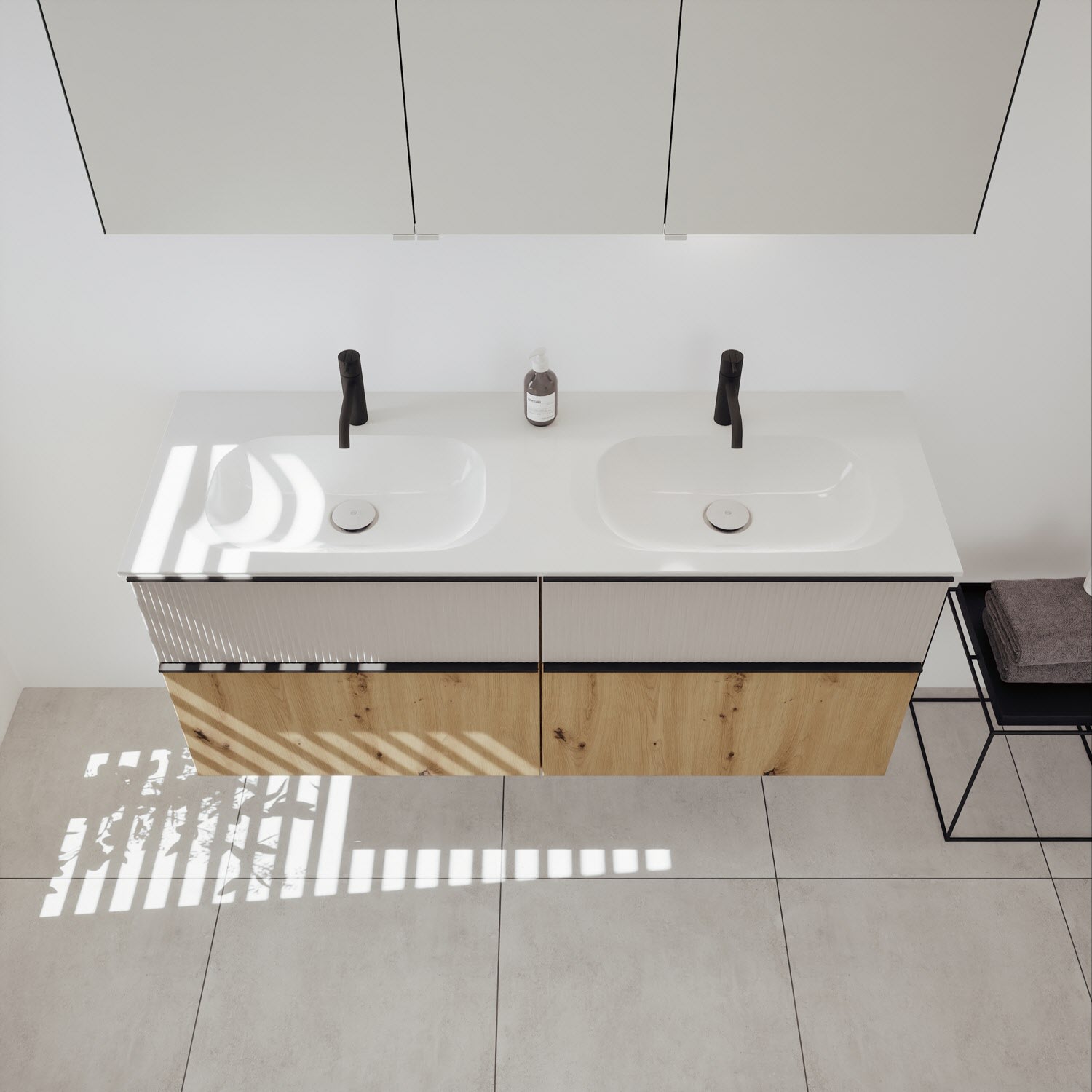 burgbad Fiumo 2.0 Mineralguss-Waschtisch mit Waschtischunterschrank 142 cm, mit Griff G0200