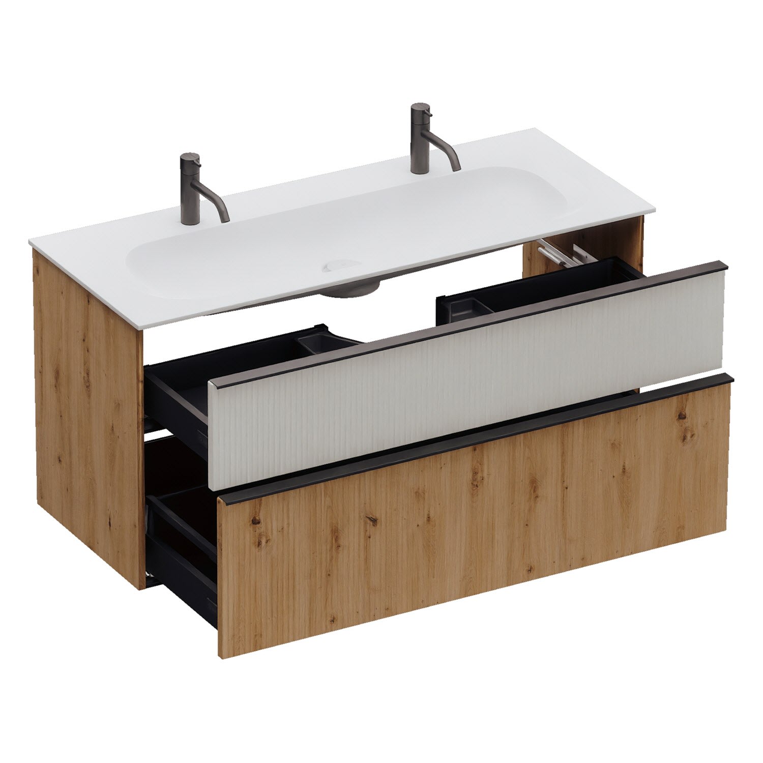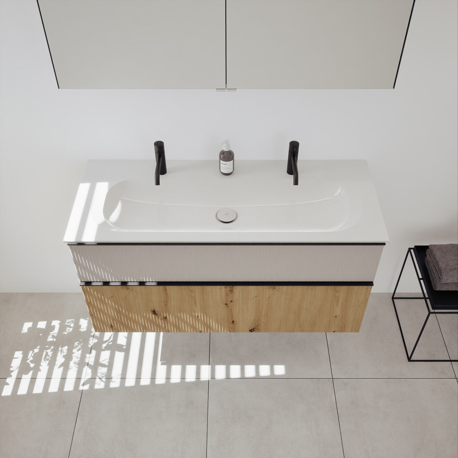 burgbad Fiumo 2.0 Mineralguss-Waschtisch mit Waschtischunterschrank 122 cm, mit Griff G0200