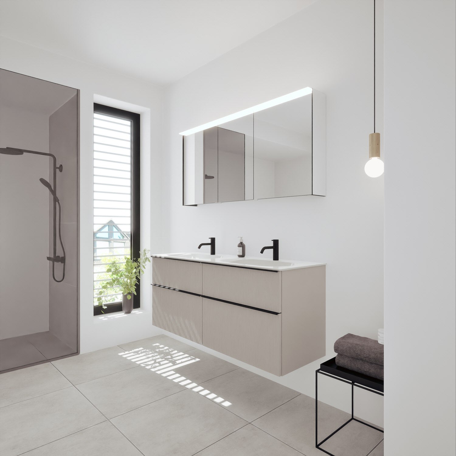 burgbad Fiumo 2.0 Spiegelschrank 140,6 cm mit LED-Aufsatzleuchte und Waschplatzbeleuchtung, 3 Spiegeltüren