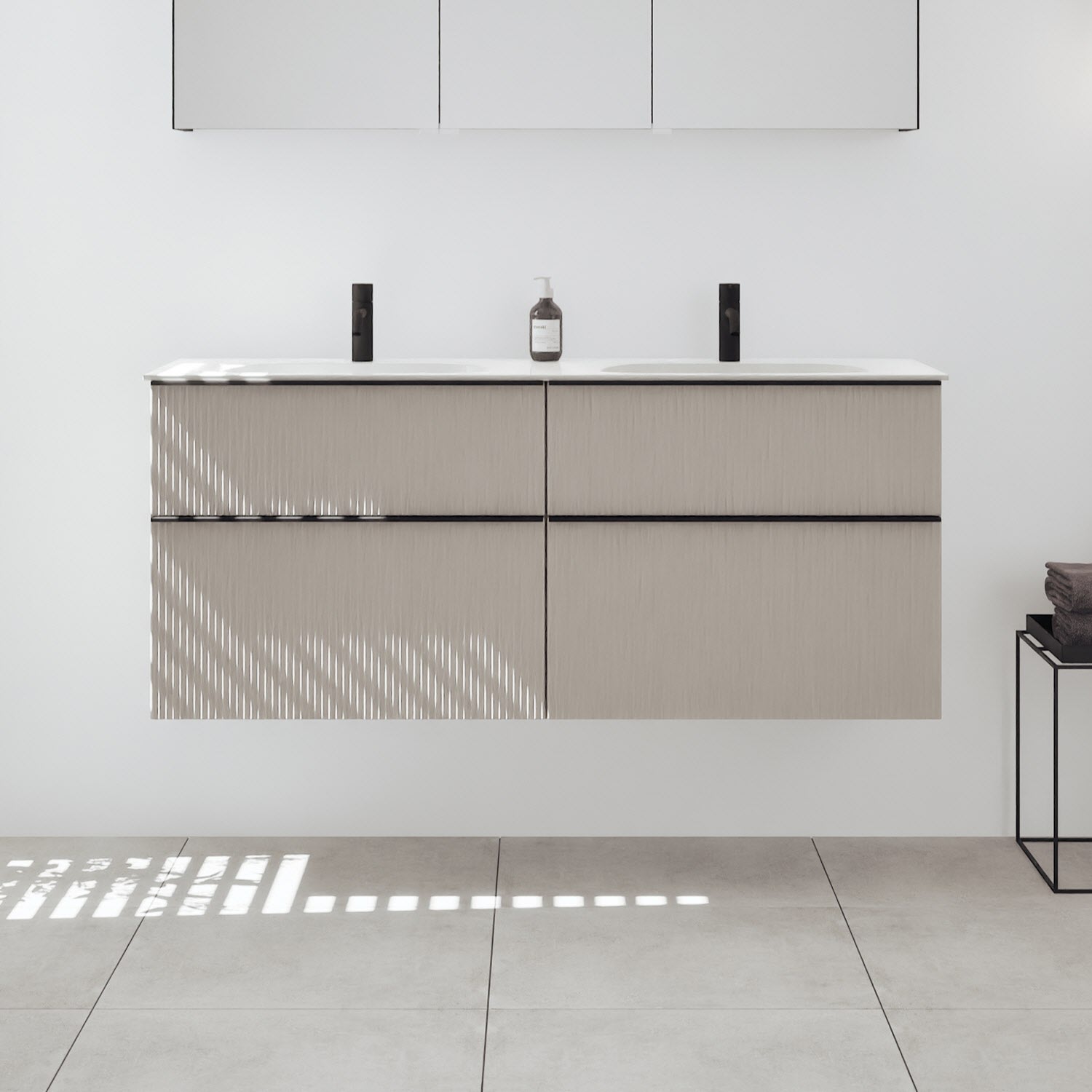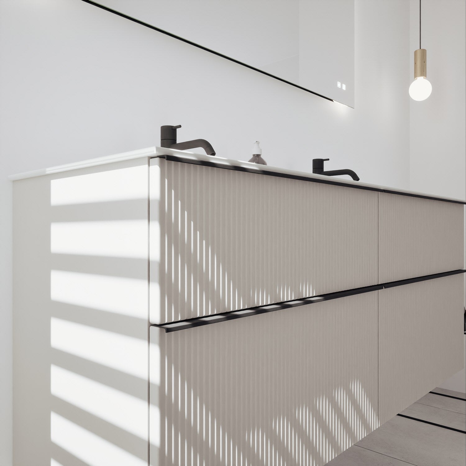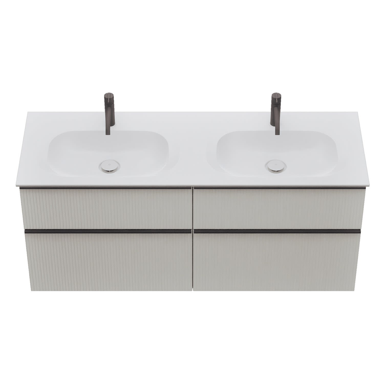 burgbad Fiumo 2.0 Mineralguss-Waschtisch mit Waschtischunterschrank 142 cm, mit Griff G0200