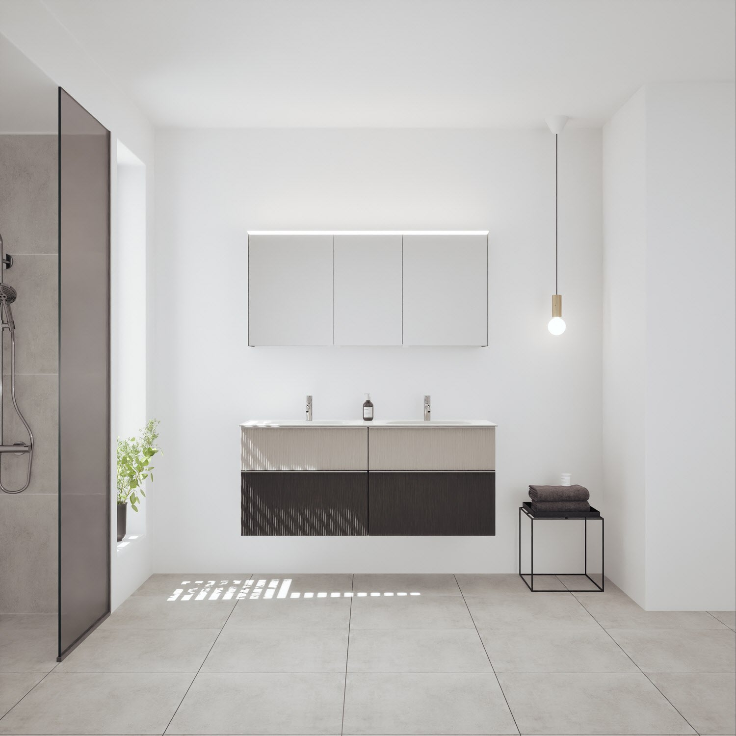 burgbad Fiumo 2.0 Spiegelschrank 140,6 cm mit LED-Aufsatzleuchte und Waschplatzbeleuchtung, 3 Spiegeltüren