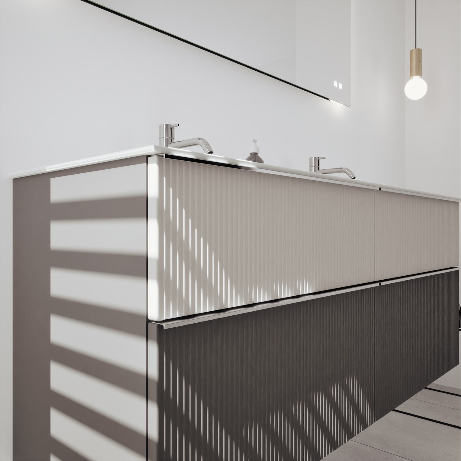 burgbad Fiumo 2.0 Mineralguss-Waschtisch mit Waschtischunterschrank 142 cm, mit Griff G0146