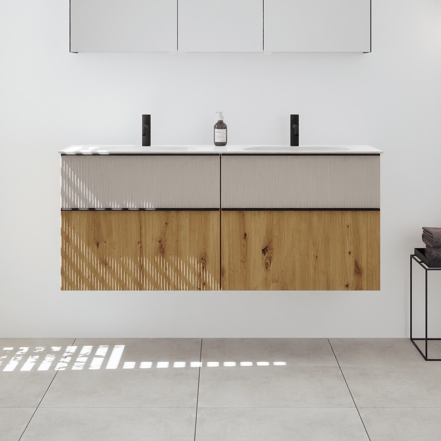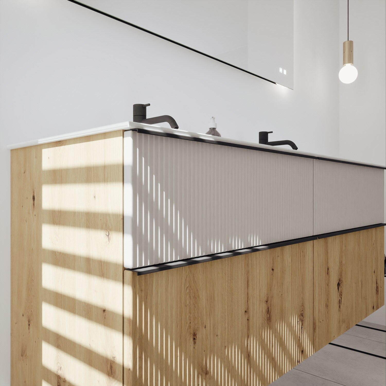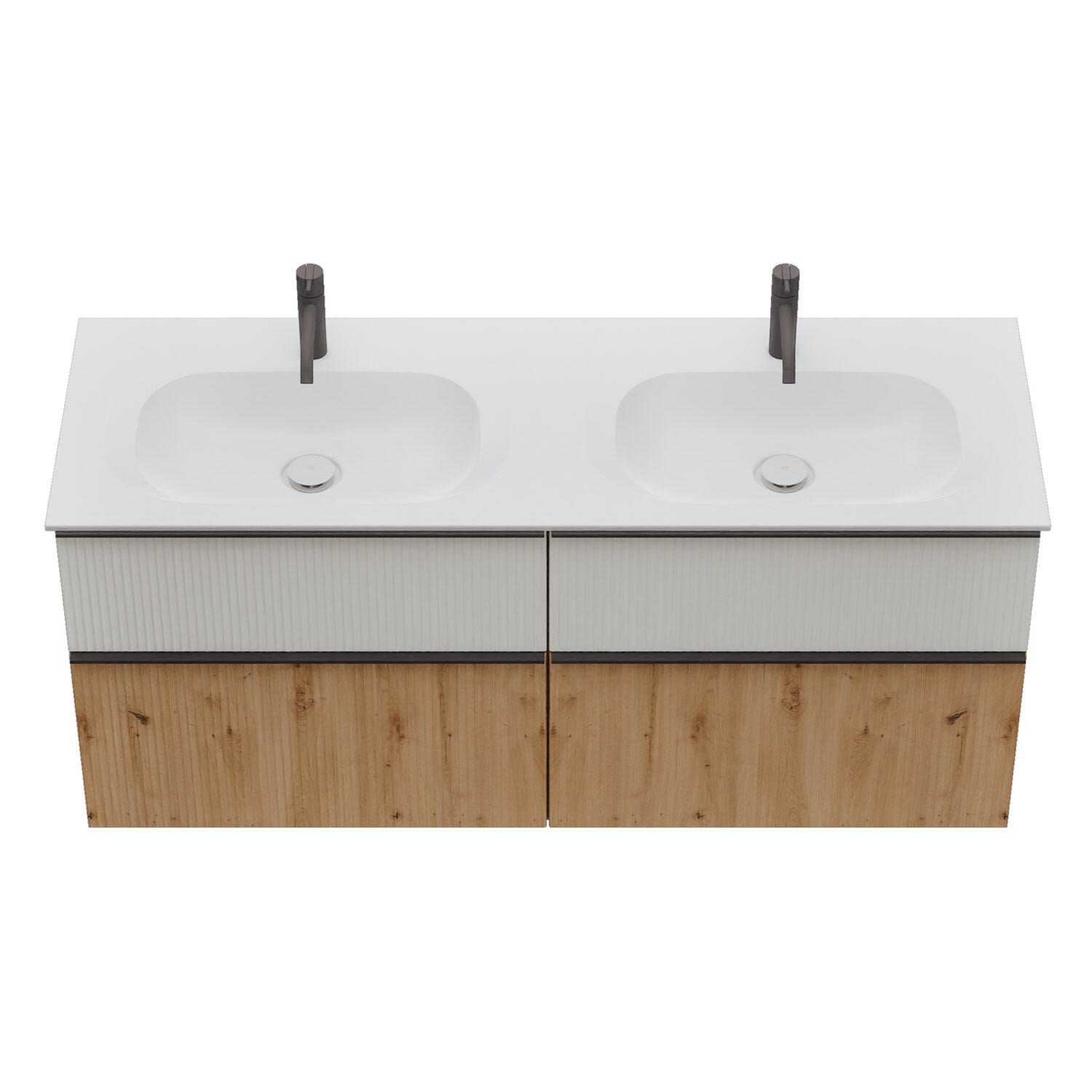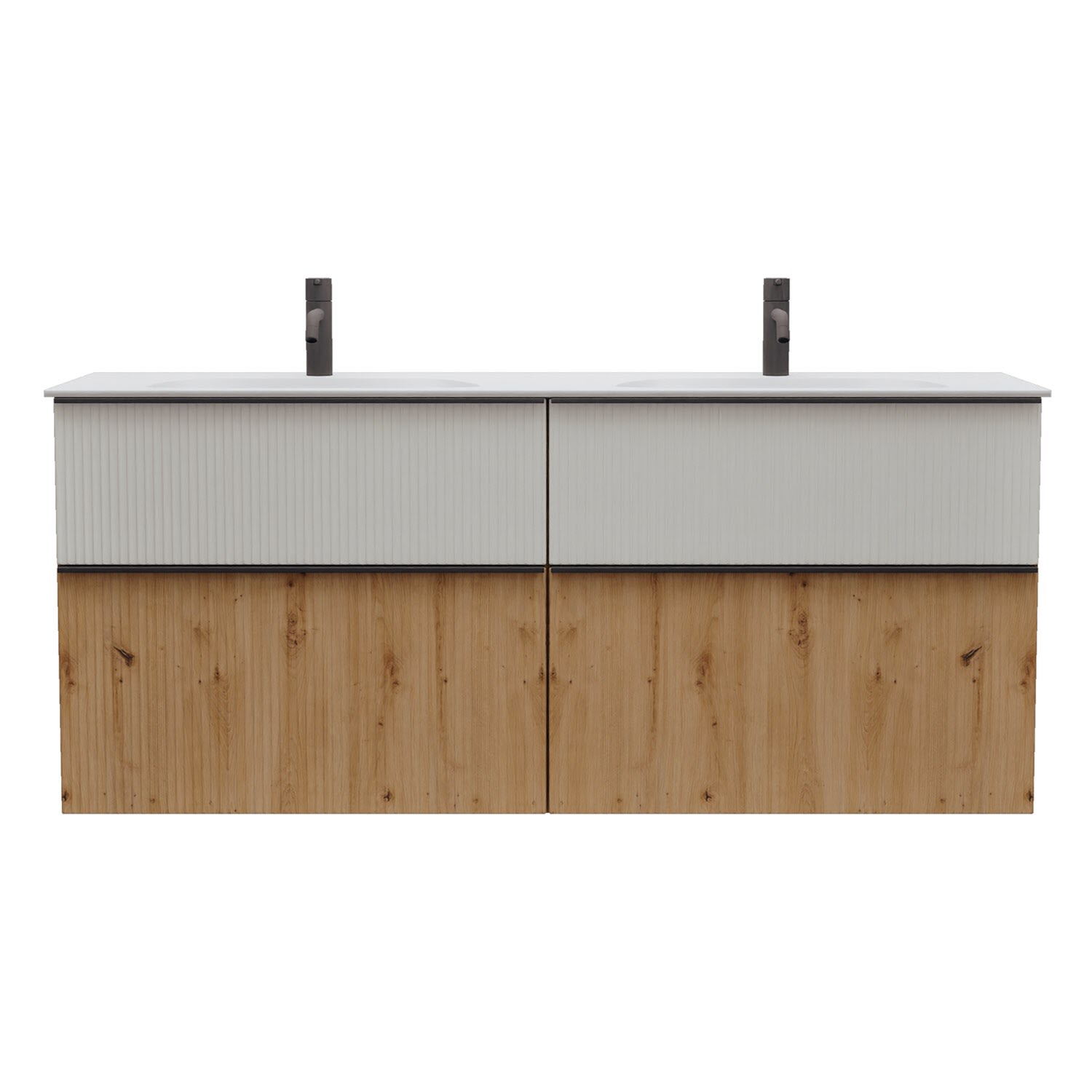 burgbad Fiumo 2.0 Mineralguss-Waschtisch mit Waschtischunterschrank 142 cm, mit Griff G0200