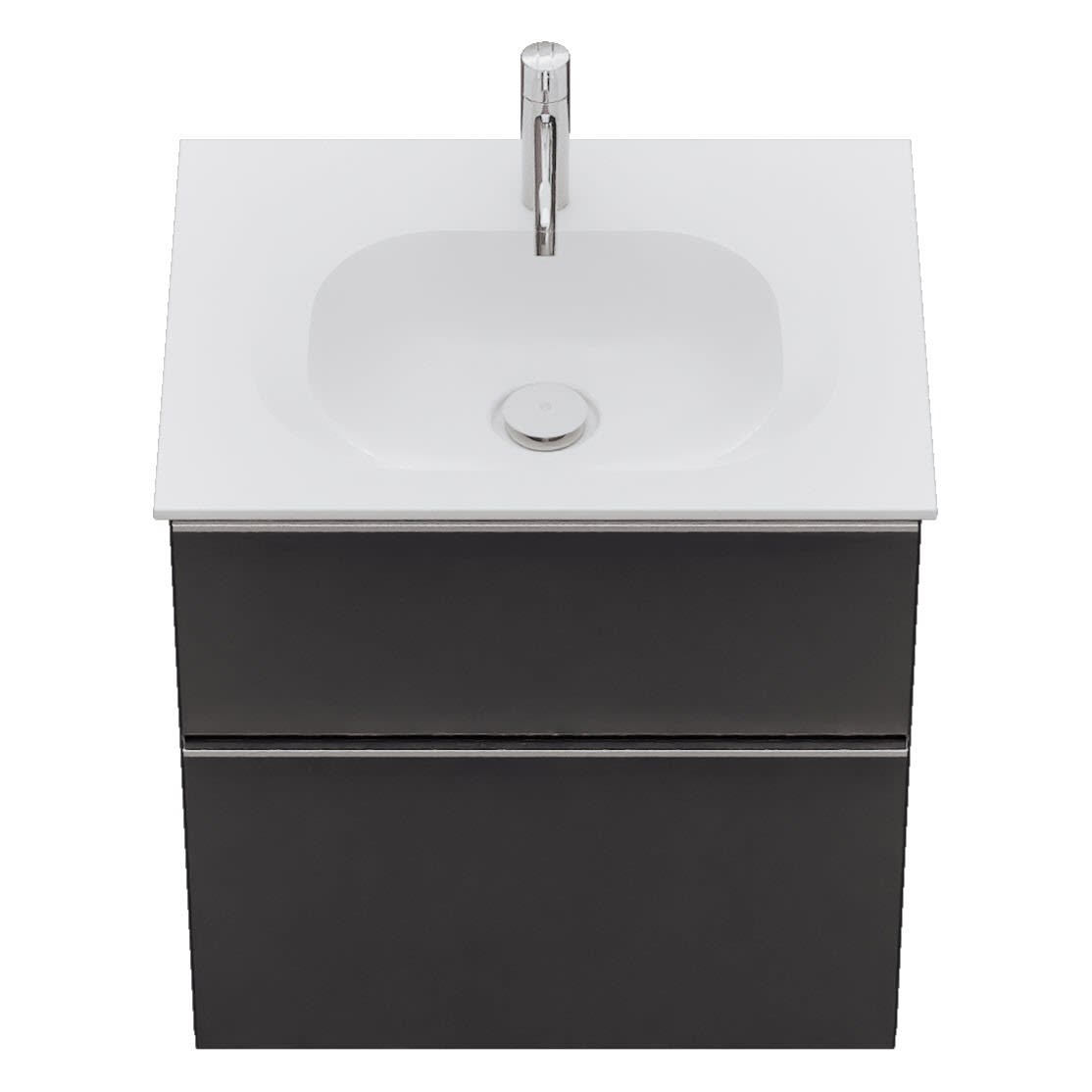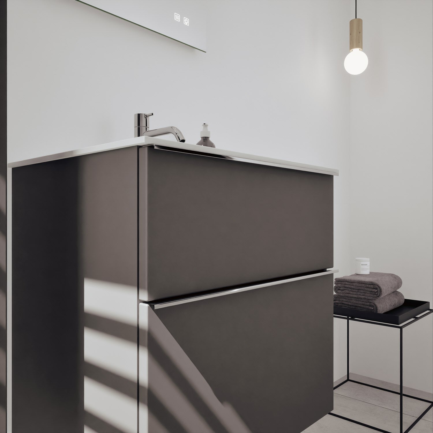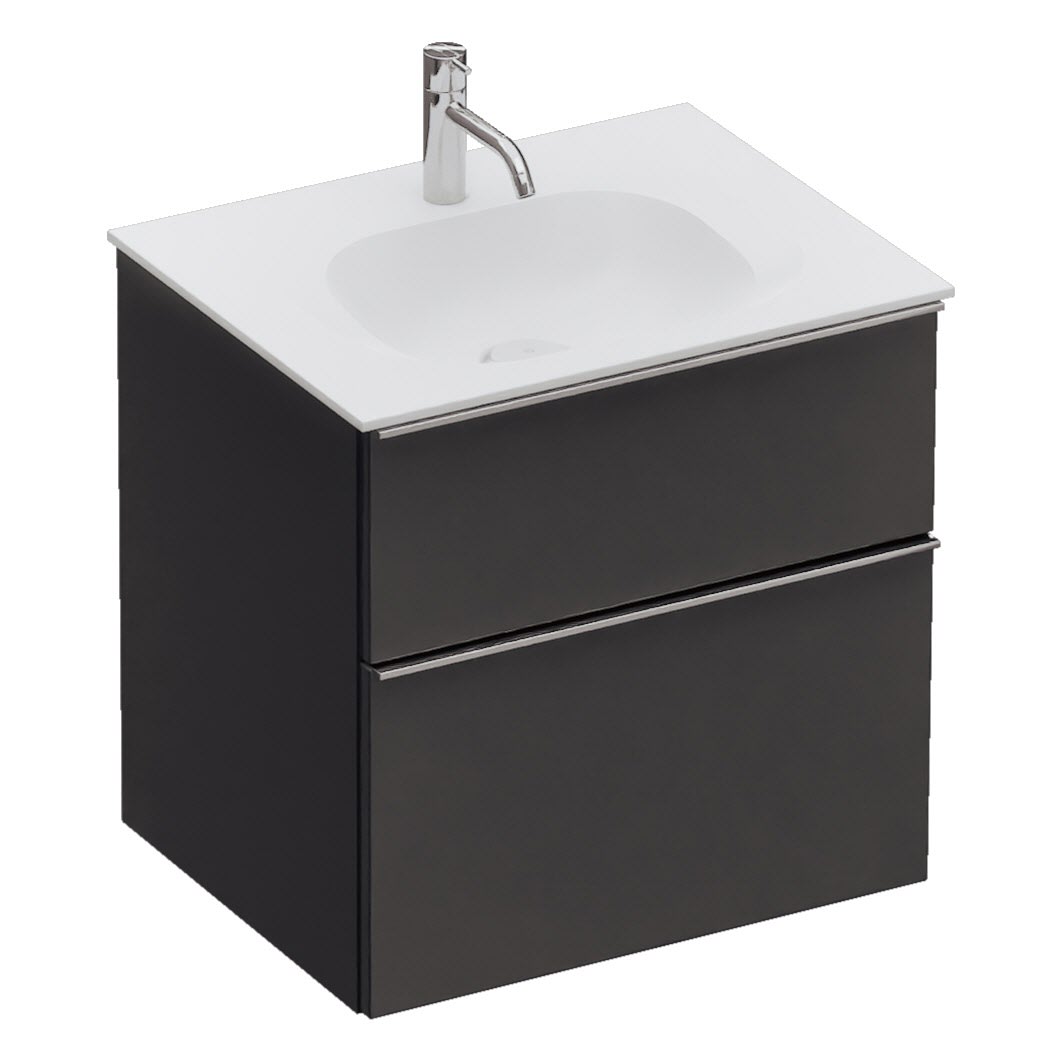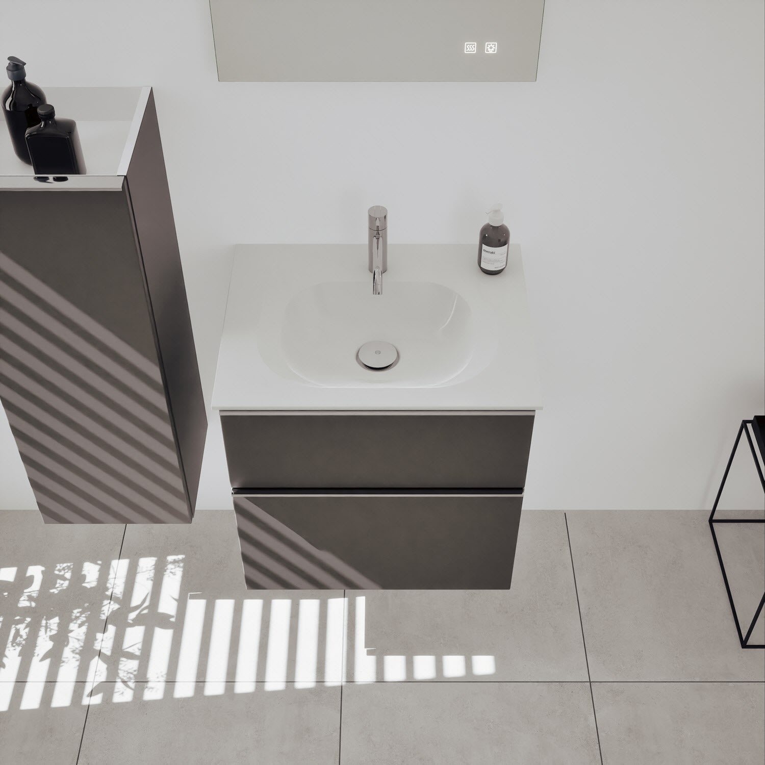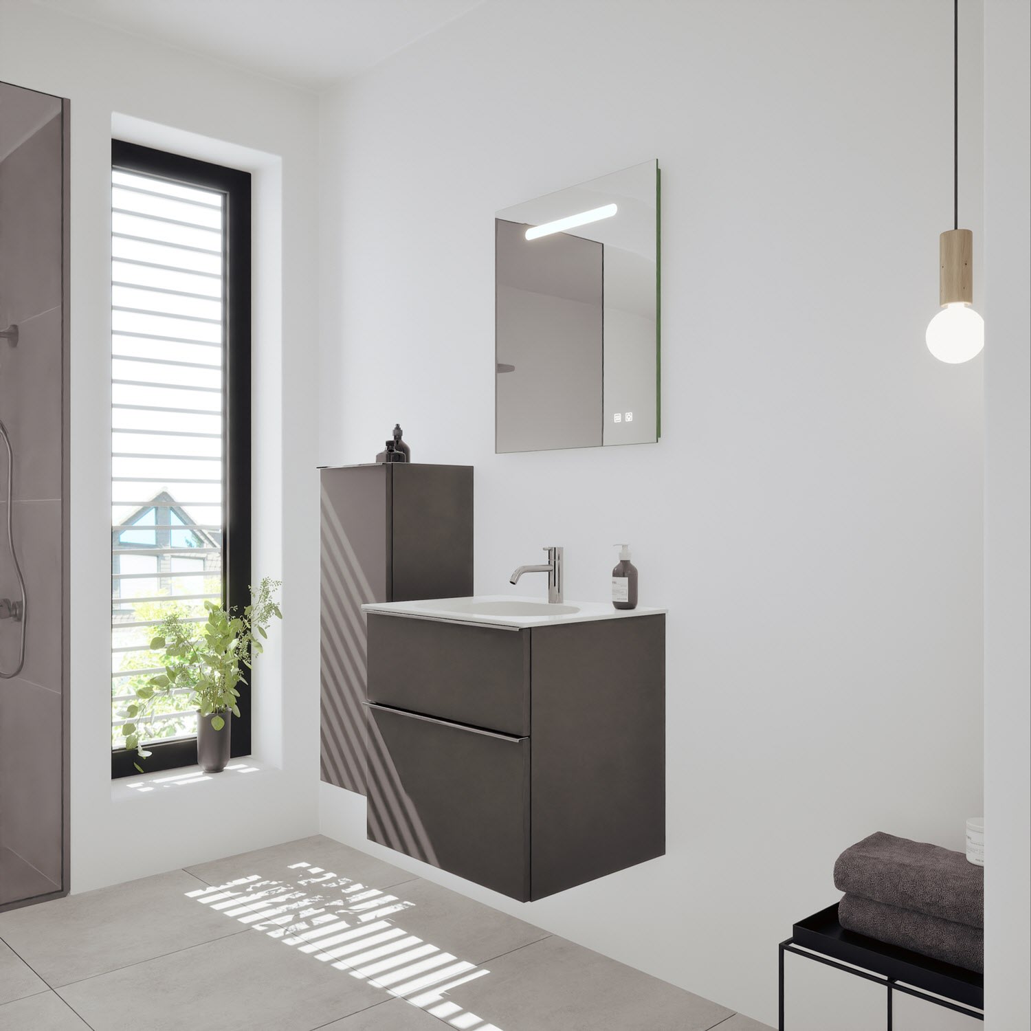 burgbad Fiumo 2.0 Mineralguss-Waschtisch mit Waschtischunterschrank 62 cm, mit Griff G0146