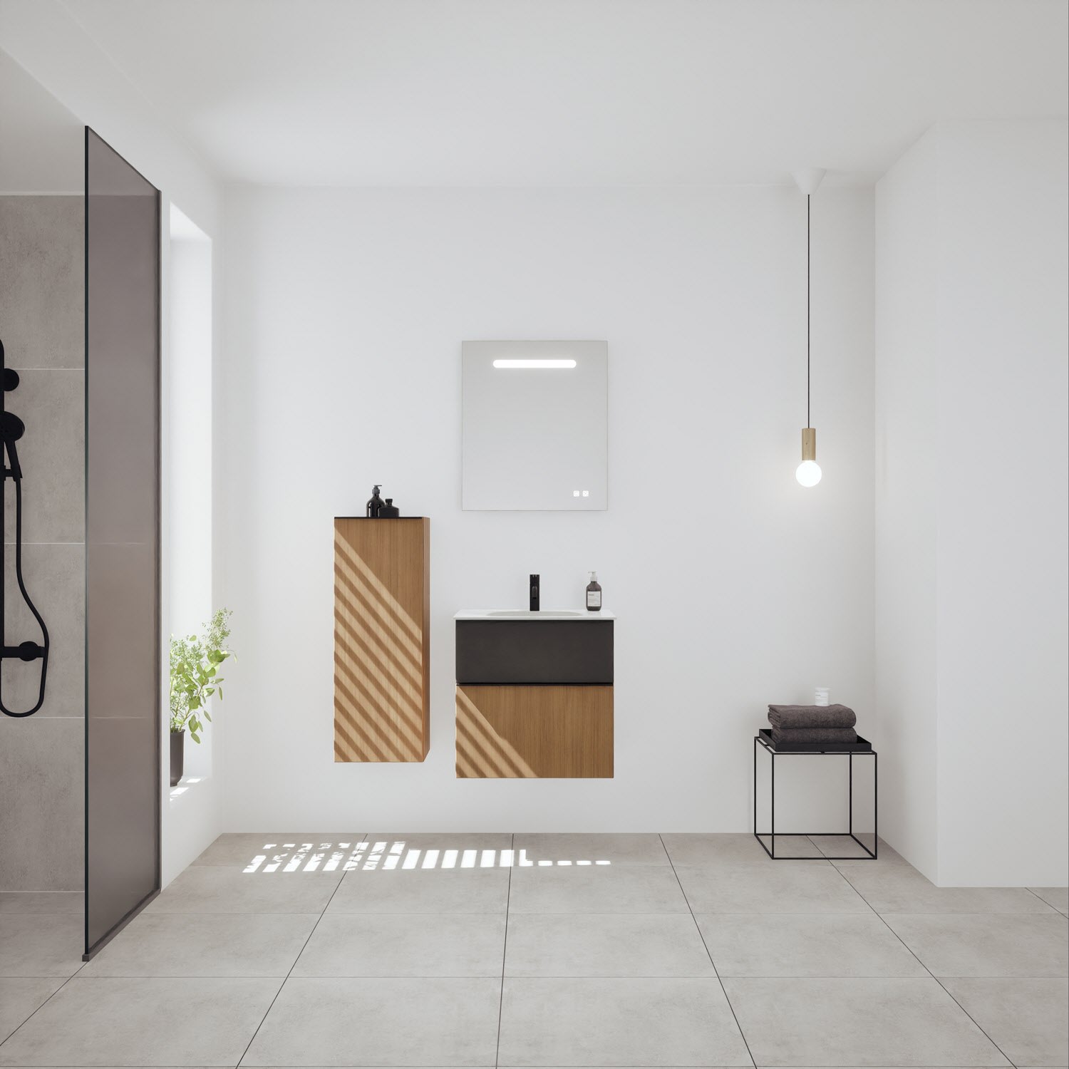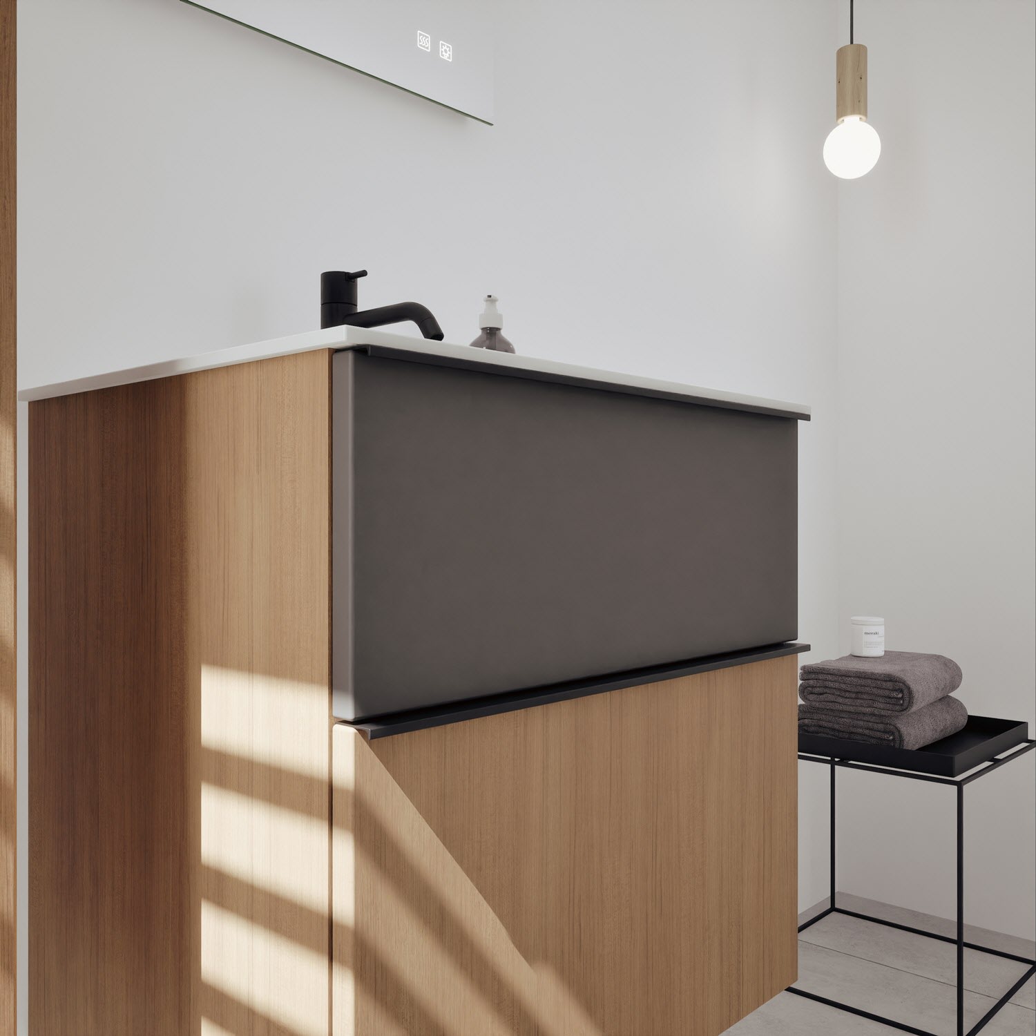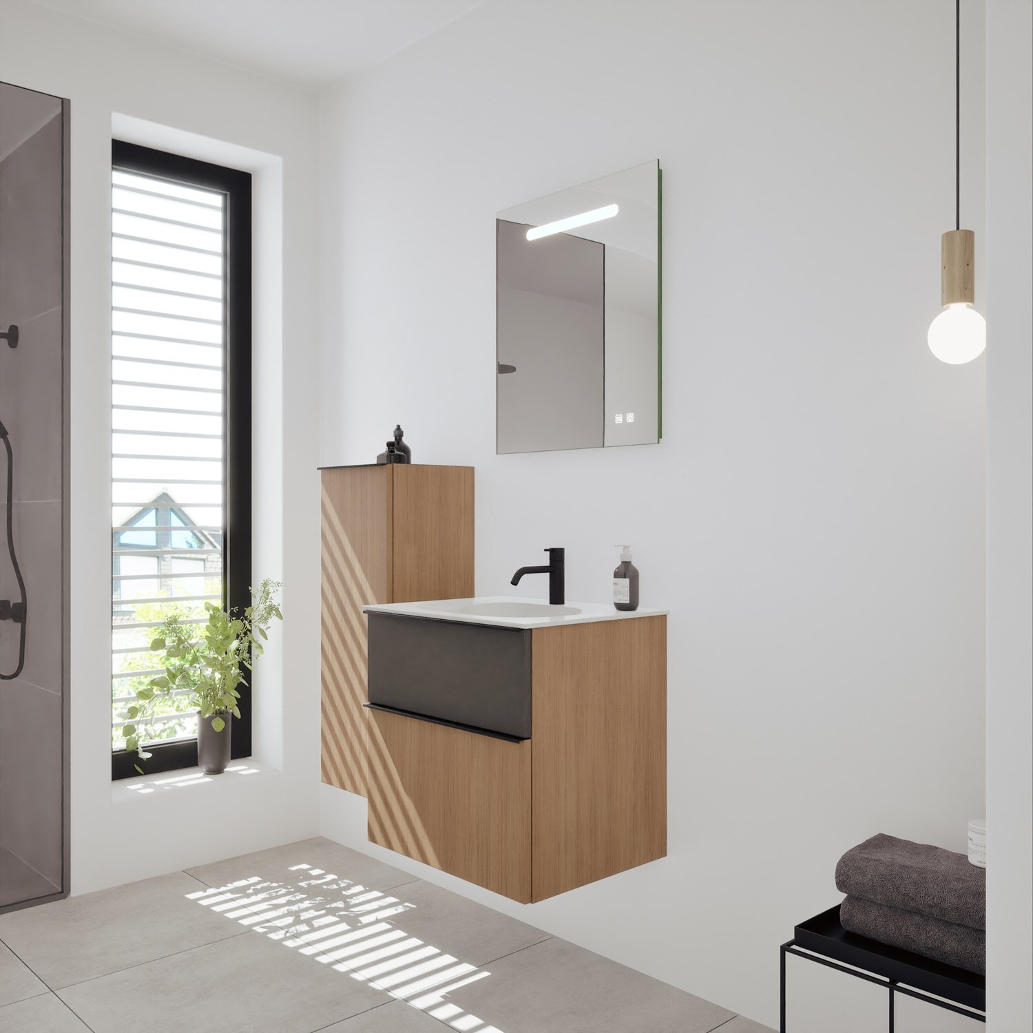 burgbad Fiumo 2.0 Mineralguss-Waschtisch mit Waschtischunterschrank 62 cm, mit Griff G0200