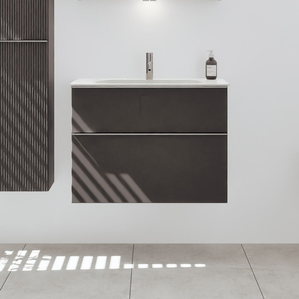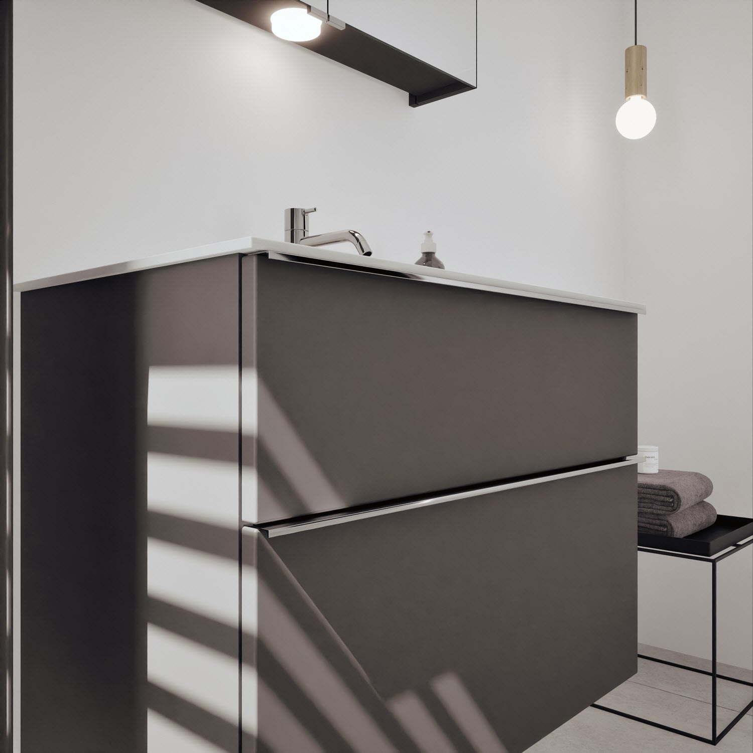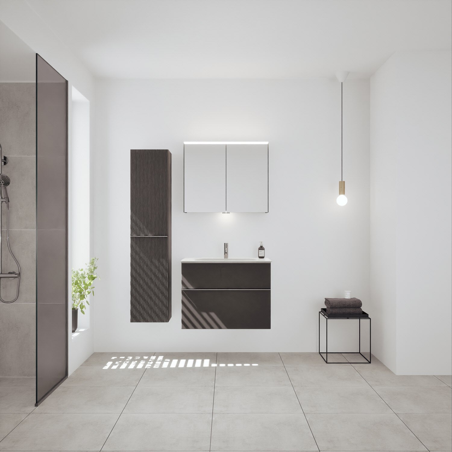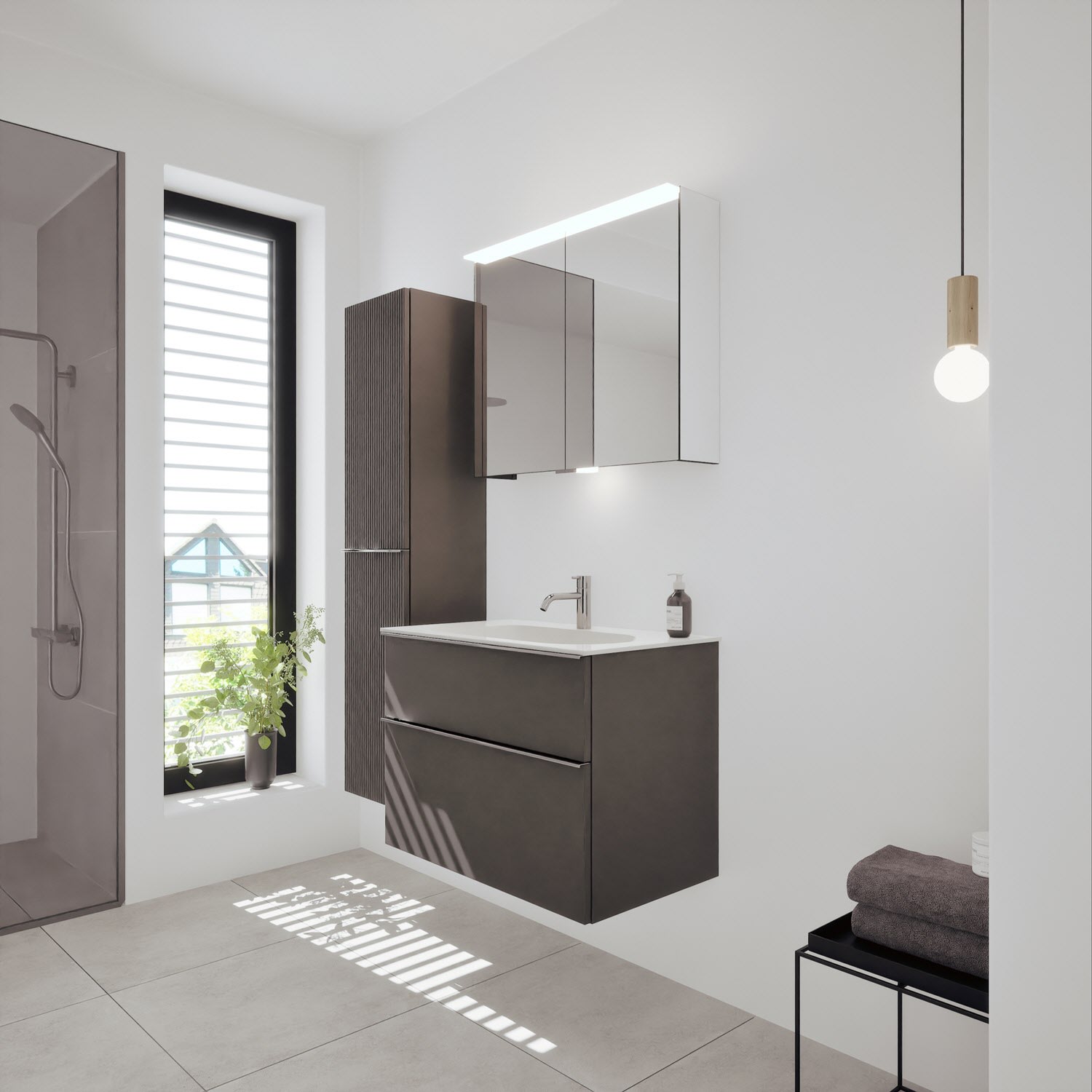 burgbad Fiumo 2.0 Mineralguss-Waschtisch mit Waschtischunterschrank 82 cm, mit Griff G0146